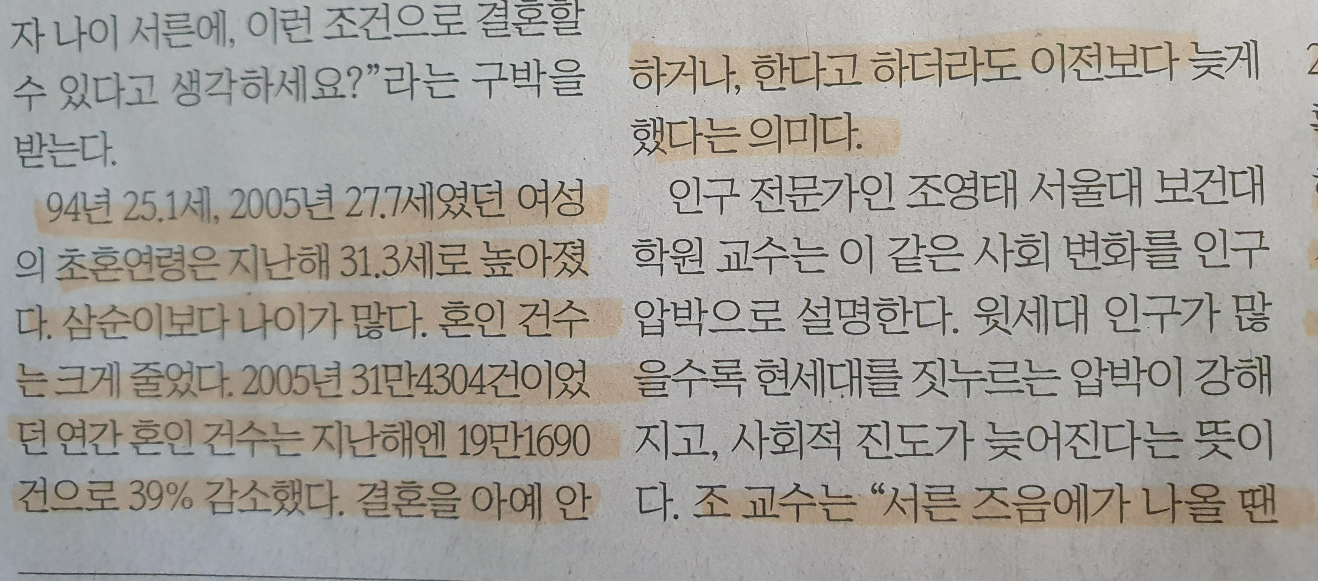 -1990년대 "서른 즈음에 가 나올 땐 29세면 위보다 아래가 많은 사회적 어른으로서 직장을 잡고 결혼하는 역할을 해야 했다.". "지금은 위가 가득 찼으니 사회 진출 연령대가 늦춰지는 것" / 조영태 서울대 보건대학원 교수님