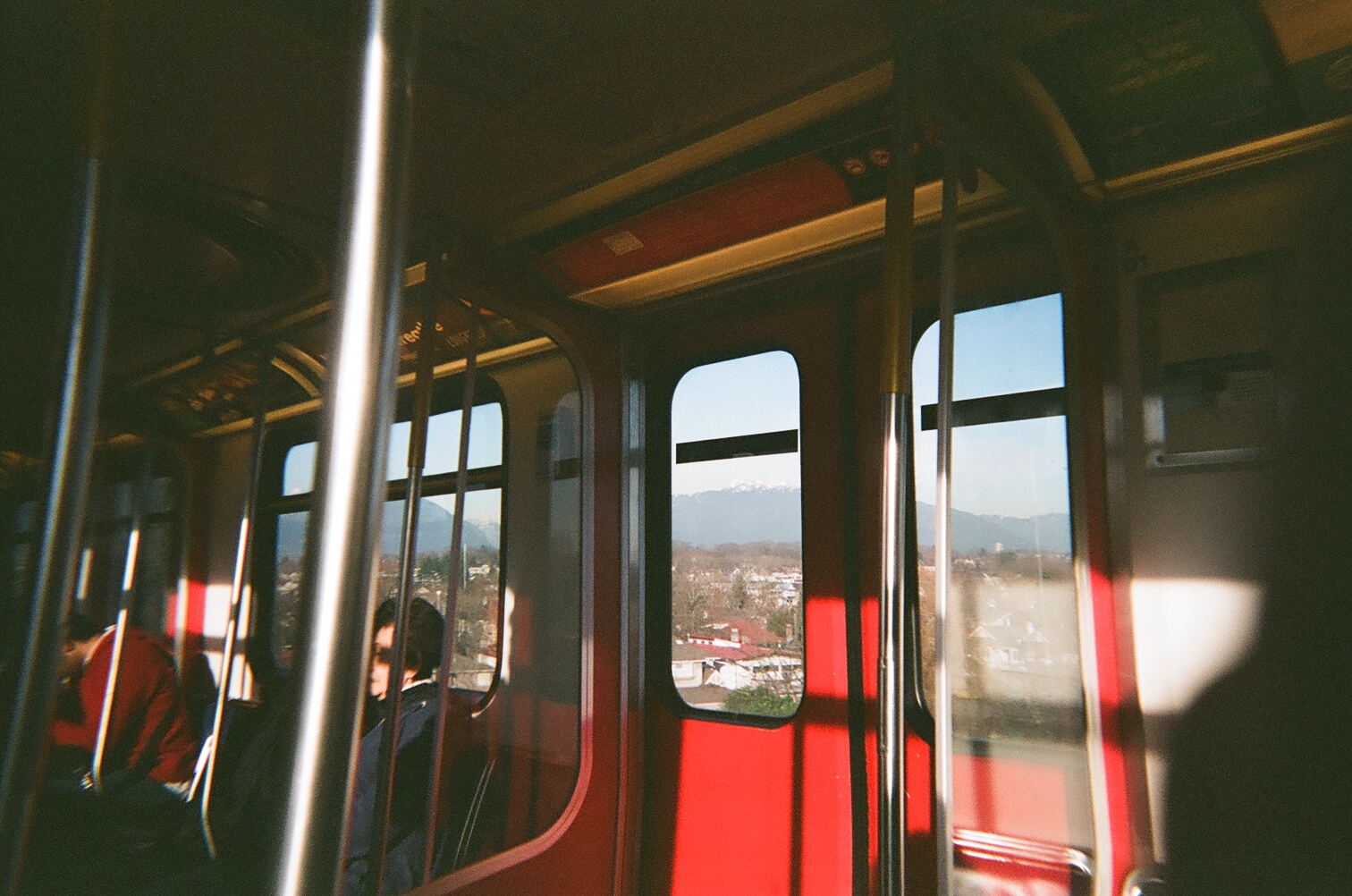 지하철내부의 빨간 색감. 원색의 빨간색이라 더 이국적이다.