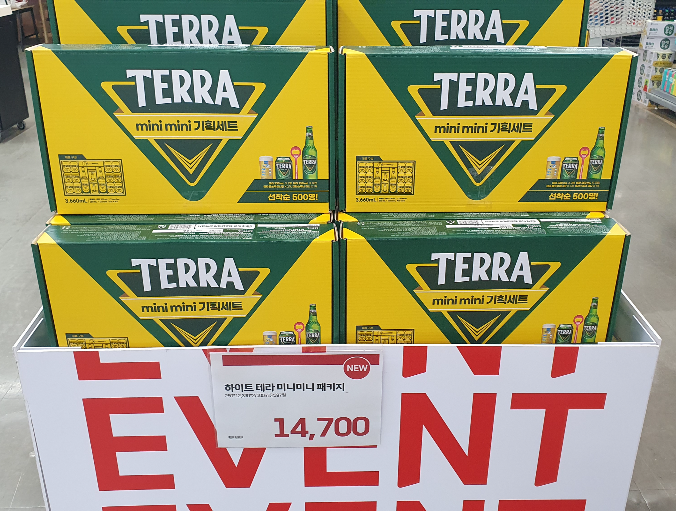 오늘은 저의 참새방앗간 롯데마트에서 6월 행사로 팬매 중인 하이트 테라 미니미니 패키지 구입기입니다.