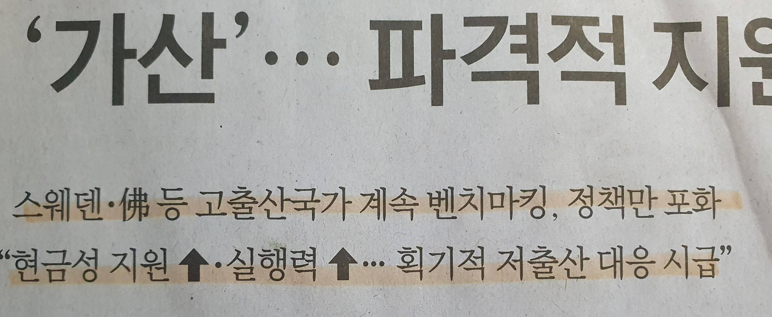 -현금성 지원과 실행력을 통해 출산시 혜택을 크게 주어야 하는 상황