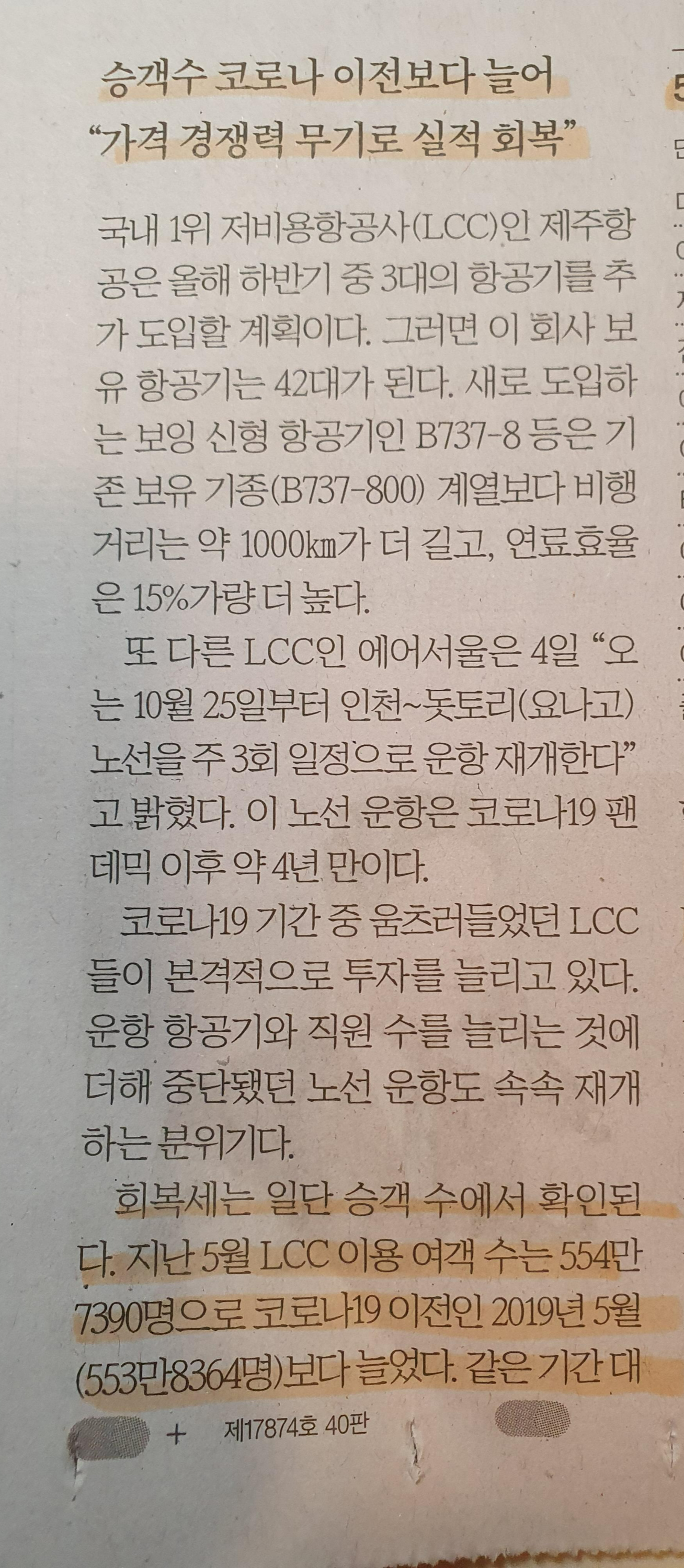-항공사들은 운임적으로도 좋은 가격으로 세일즈 할 수 있기에 앞다투어 비행기와 직원채용에 적극적으로 진행 중.