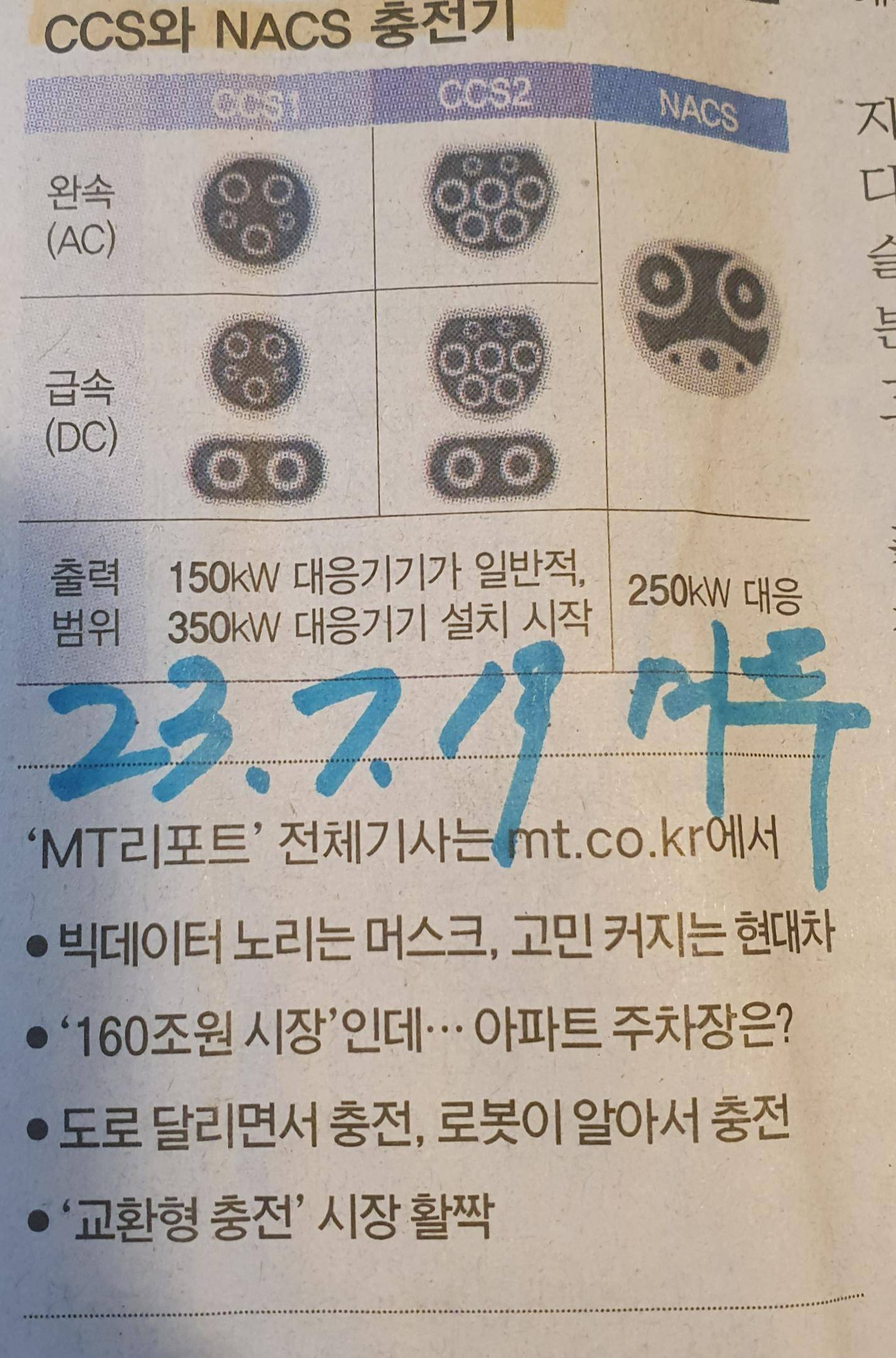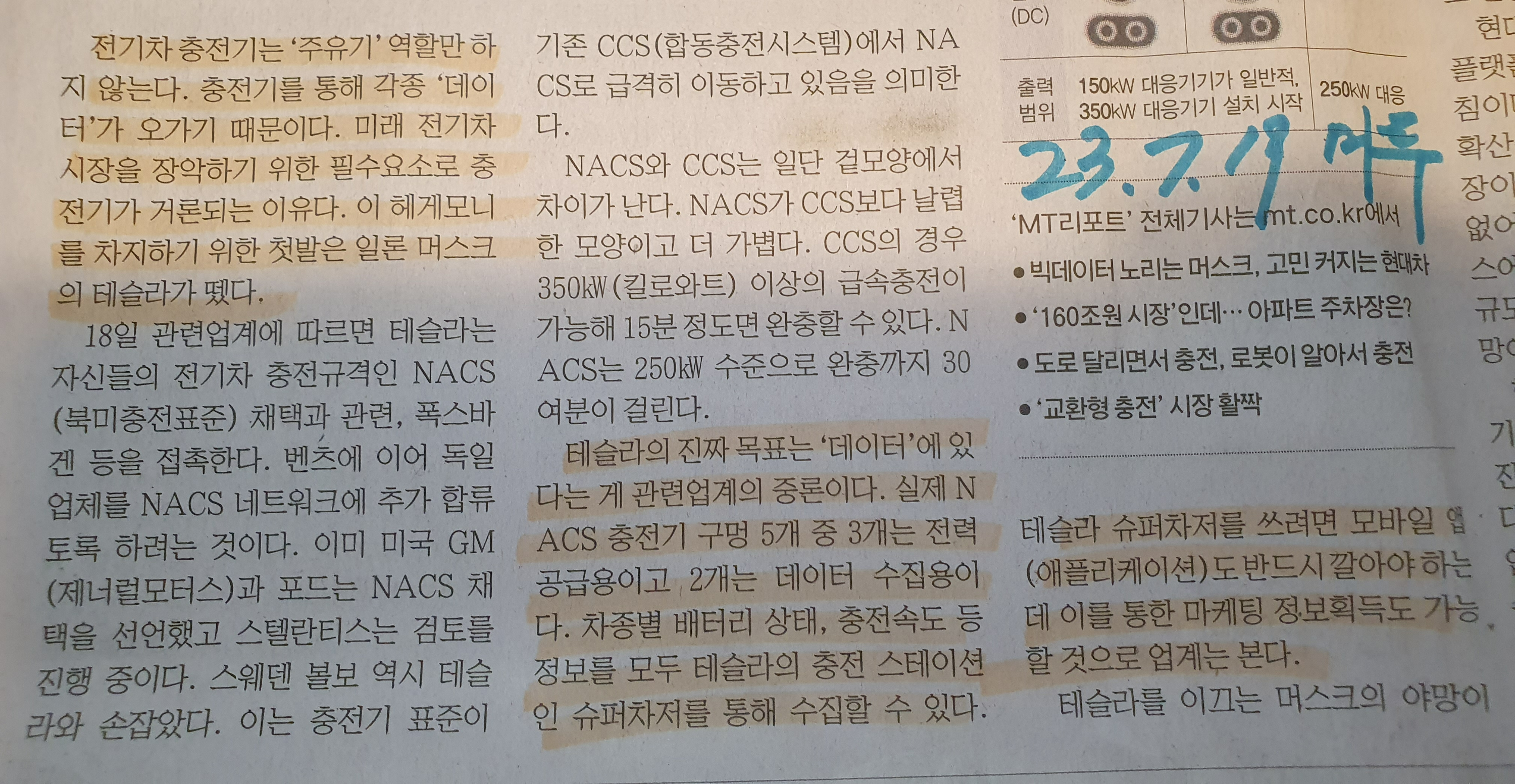 Comment)) 빅픽쳐에서 충전기의 통일과 독점화는  결국 쌓일수록 돈이 되는 빅데이터를 위한 큰 밑그림으로 보인다. 한국의 경우 결국 미국시장의 판매를 위해서는 NACS 규격을 사용할 수밖에 없을 듯한데 어떤 상황으로 흘러갈지 궁금해진다.