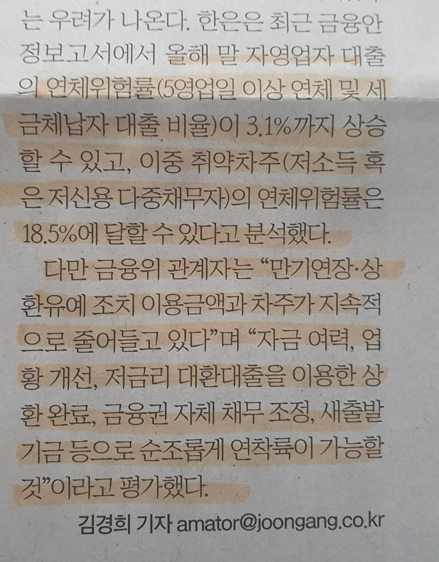 -석달 새 연체율 0.35%P 뛰어 1프로