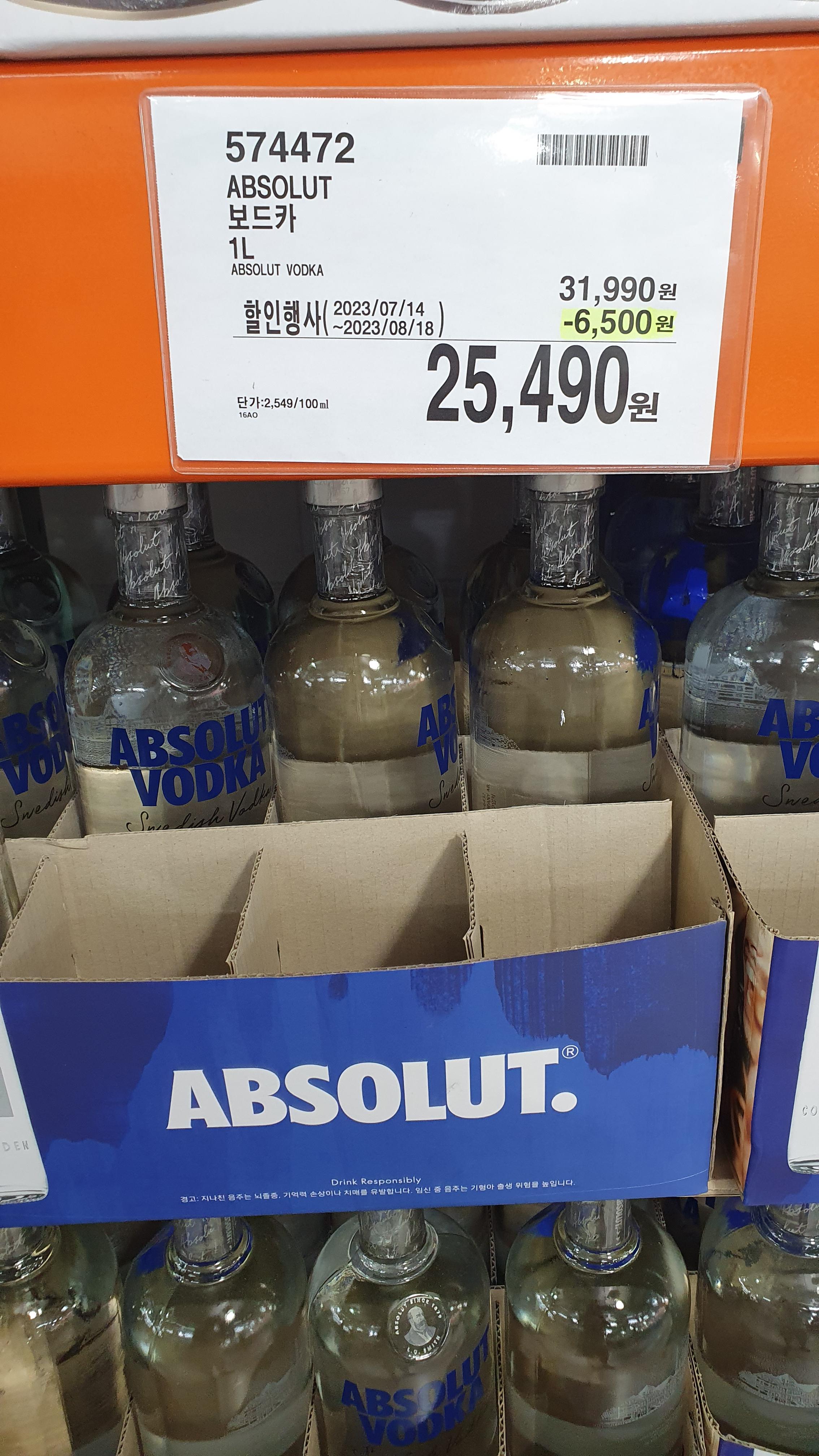 2) 앱솔루트 보드카 ABSOLUT 1L : 25,490원 (6,500원 할인) / 574472
