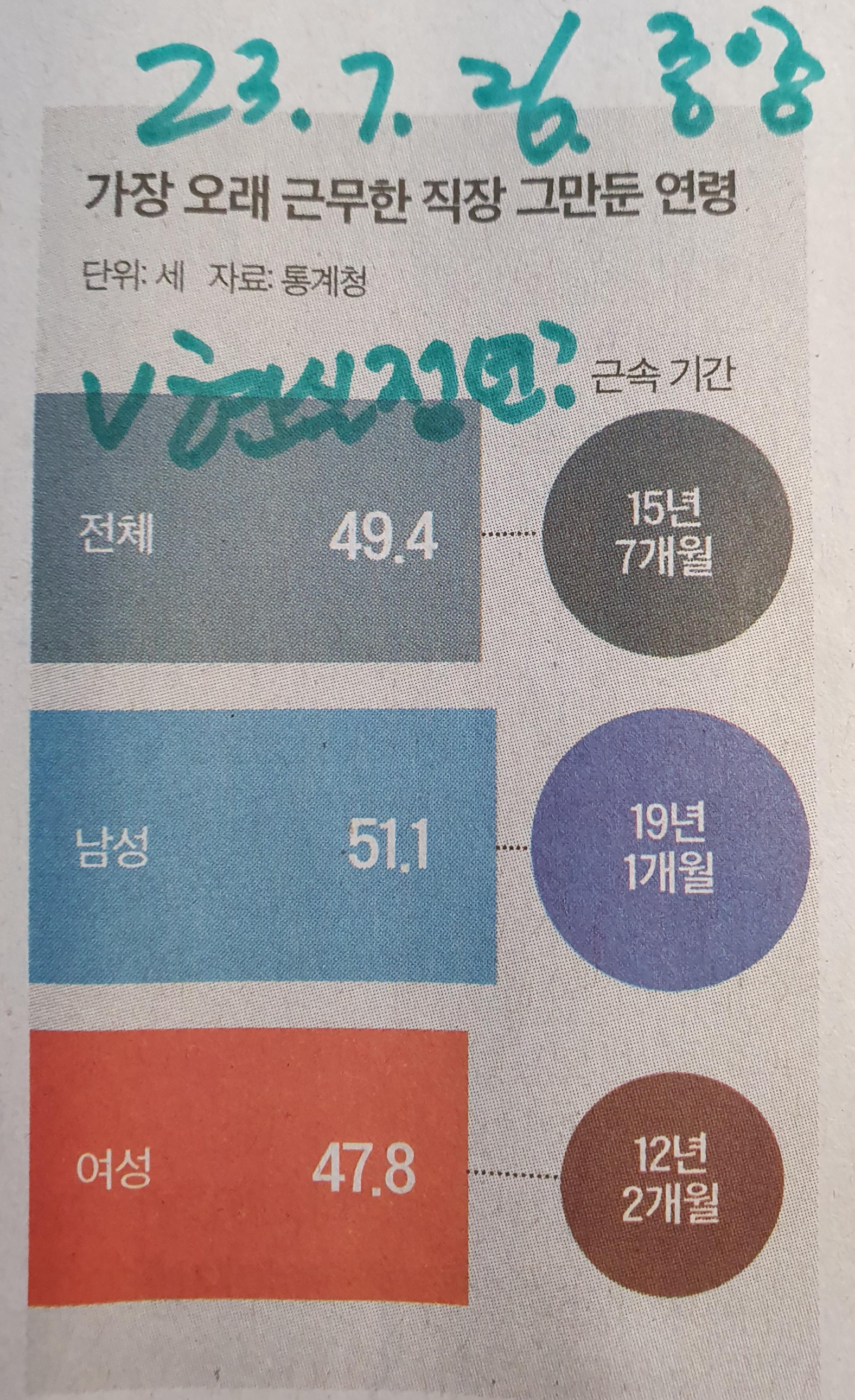 -평균적인 전체 기준 그만두는 나이는 49.4세, 대부분 50세가 안되어 직장 생활을 그만두는 경우가 많다.