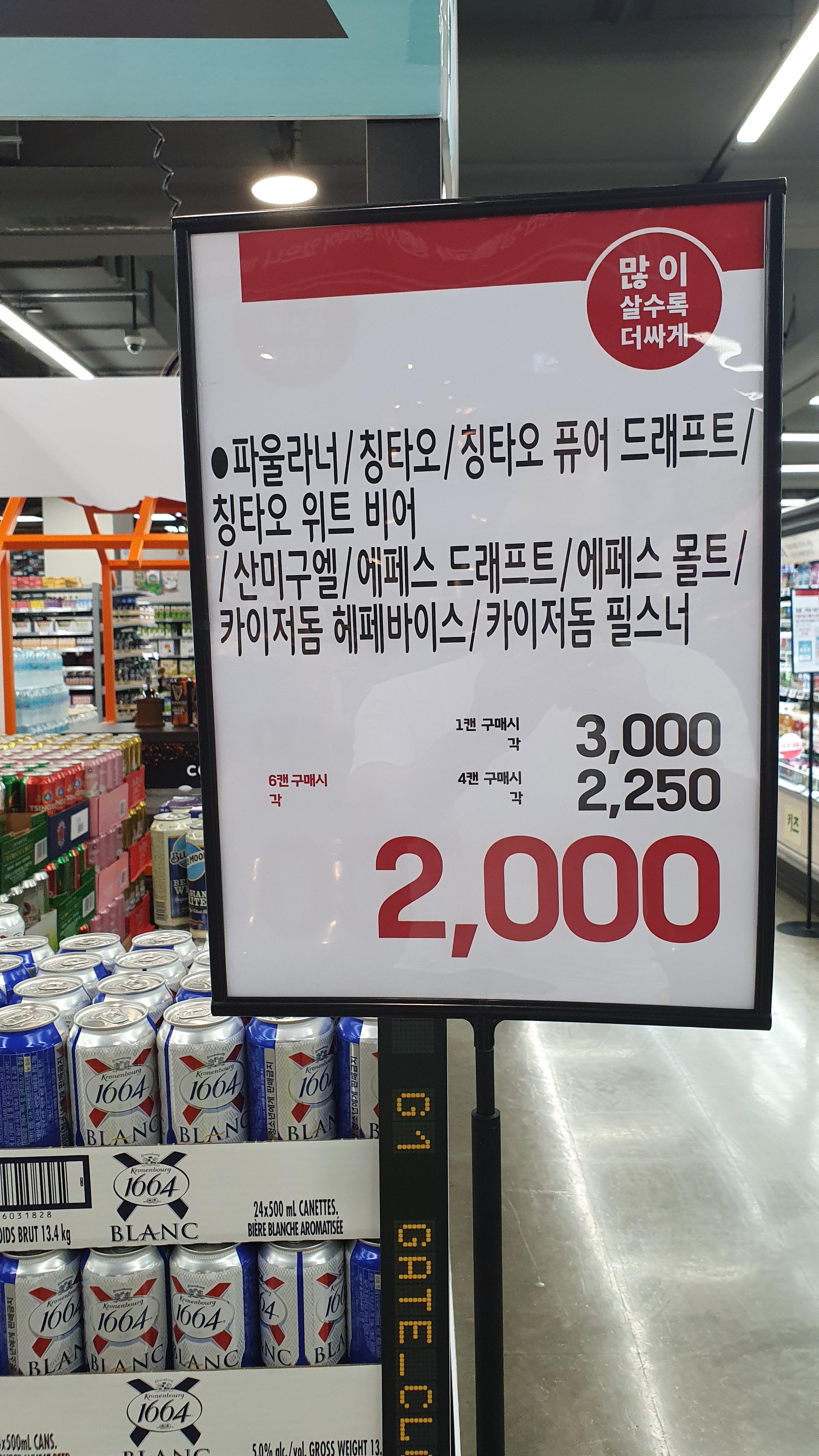 다양한 맥주를 판매하고 있어 마트에 방문하시면 이번 기회에 최저가 6캔에 2000원 구입 시 1만 2천 원이니 아주 매력적인 가격으로 보이네요.