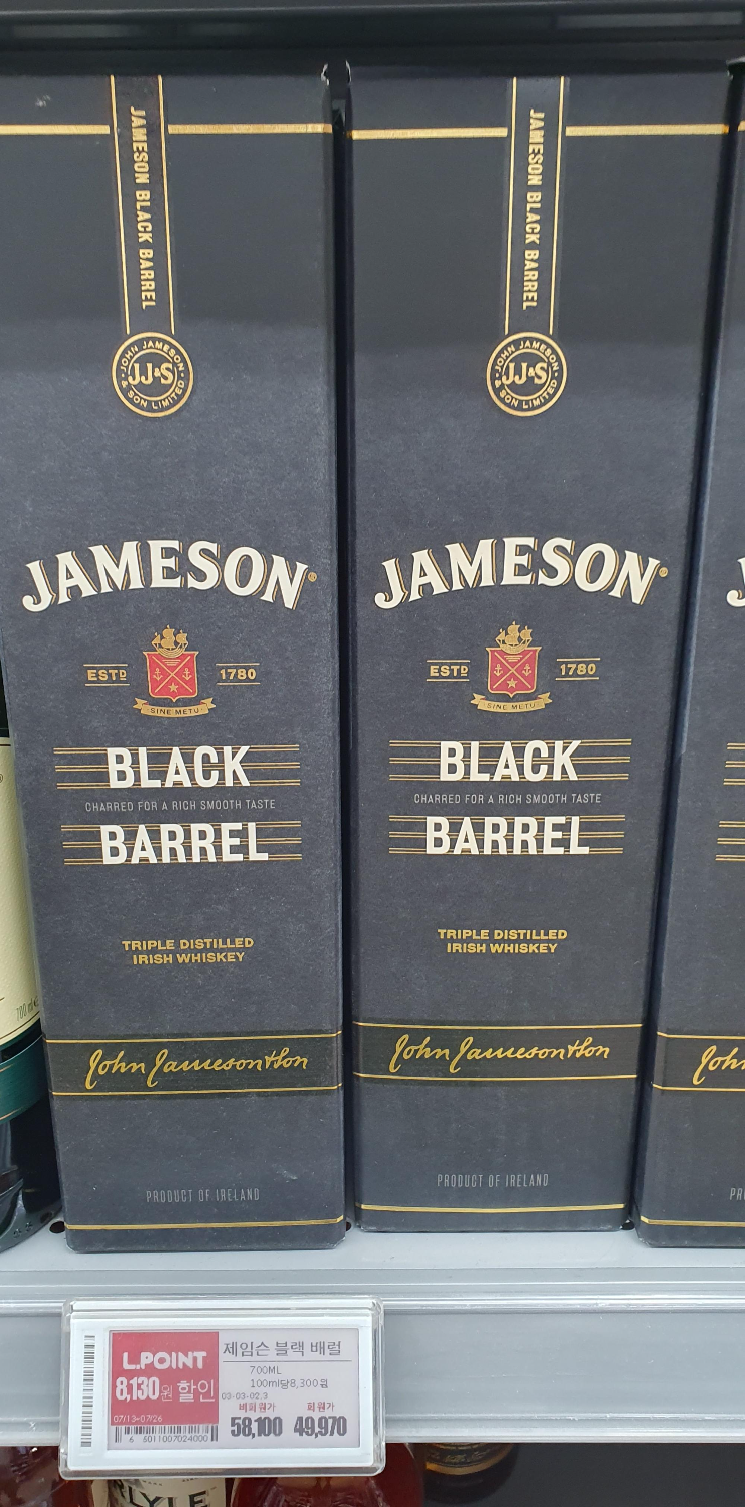 제임슨 스탠다드가 반응이 좋아서인지 그 윗 라인업 블랙 배럴도 최근 판매하는 곳이 많아 지더라군요.