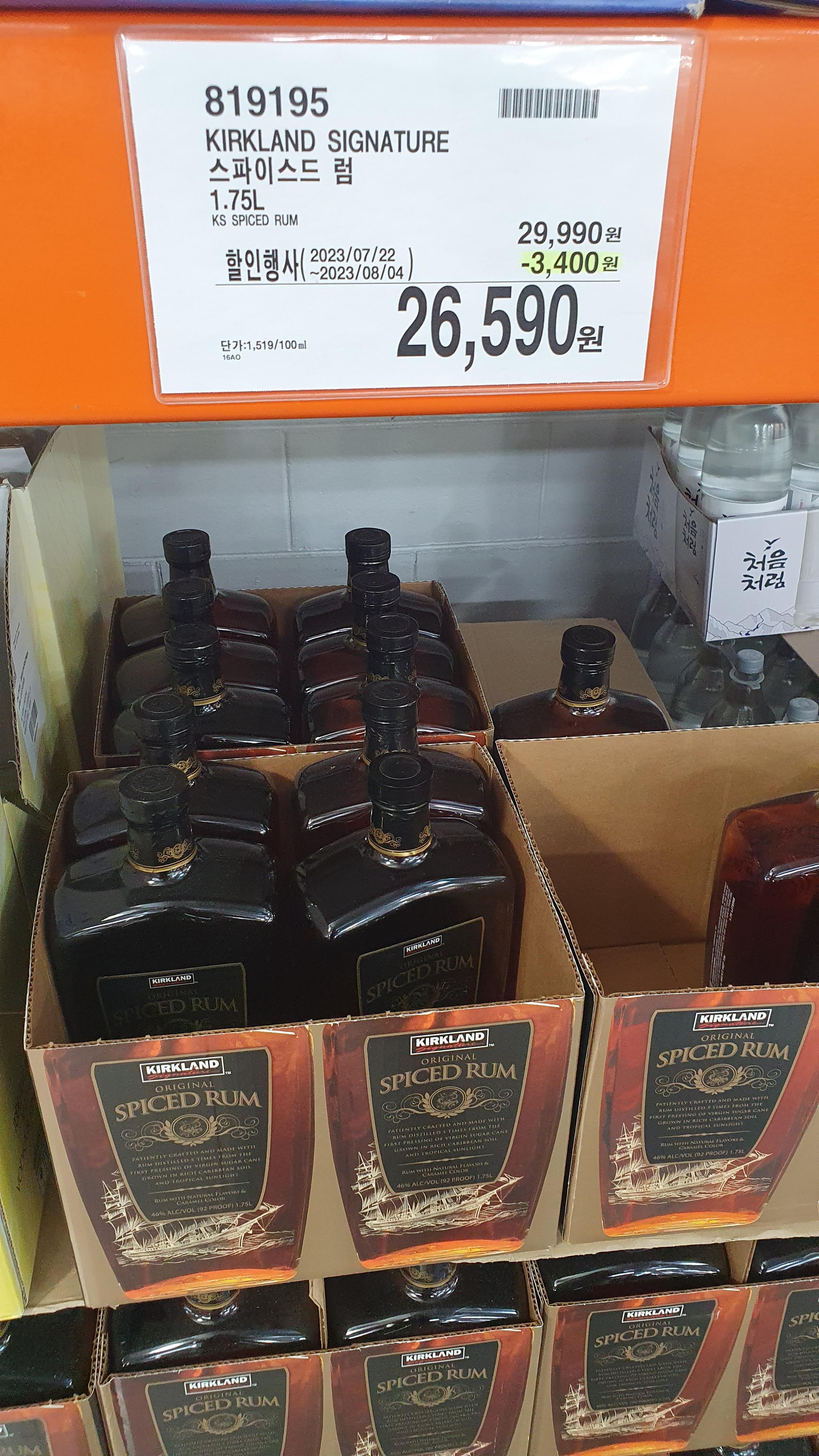 3) 커클랜드 Kirkland 스파이스드 럼 1.75L : 26,590원 (할인가!!) // 819195 //