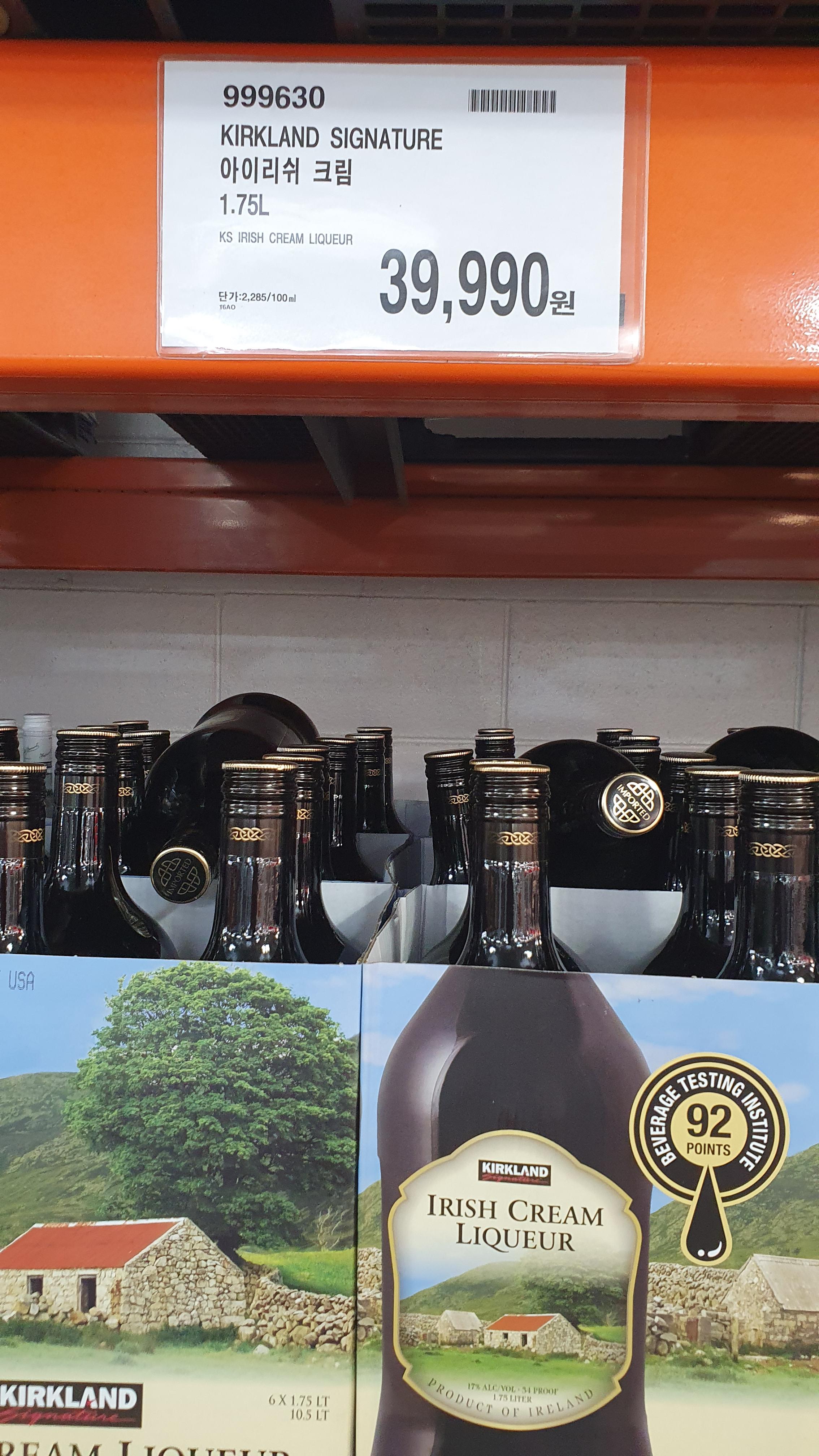 4) 커클랜드 Kirkland 아이리쉬 크림 1.75L : 39,990원 // 999630 //