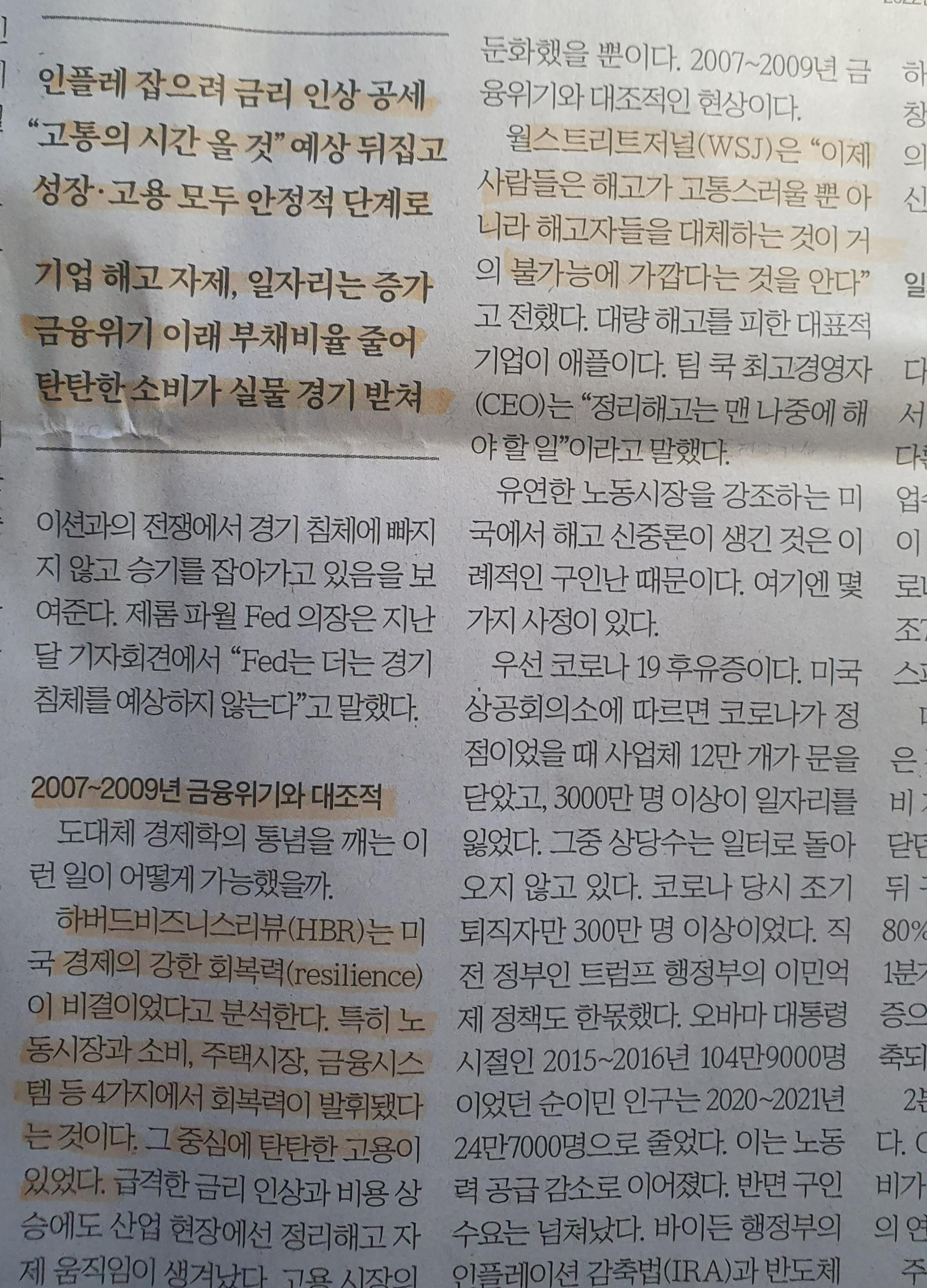-미국 경제의 강한 회복력의 비결 // 1) 노동시장, 2) 소비, 3) 주택시장, 4) 금융시스템 // 4가지에서 회복력을 발휘