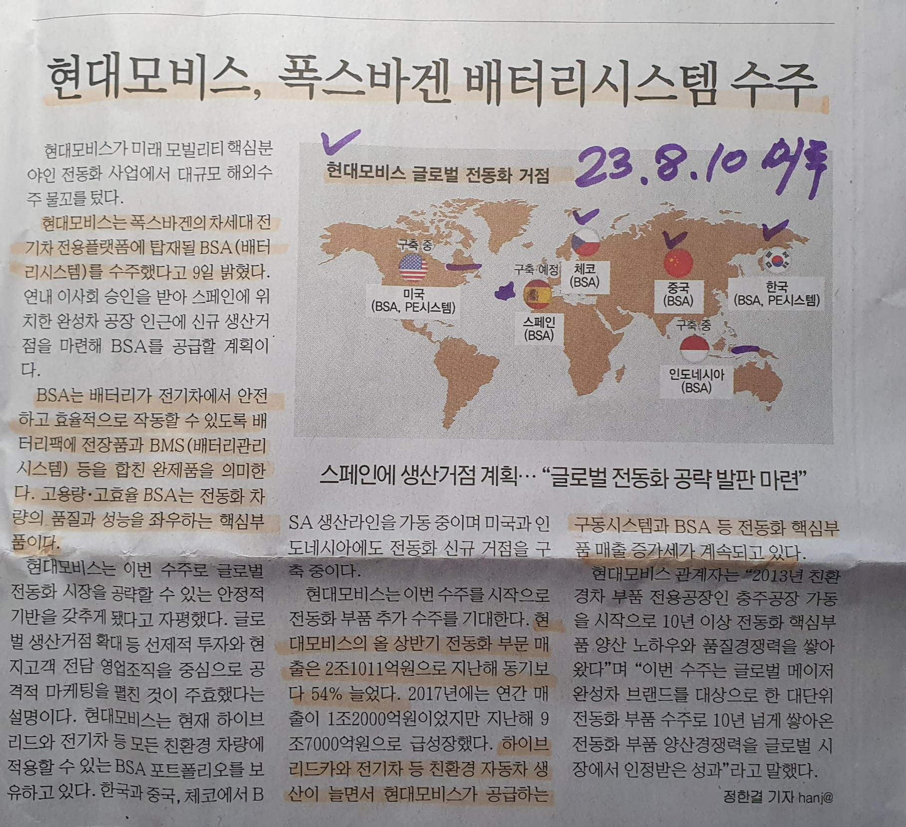 현대모비스의 글로벌 전동화 거점의 확장, BSA #기업은 어떻게든 길을 찾아낸다 23.8.10 머투