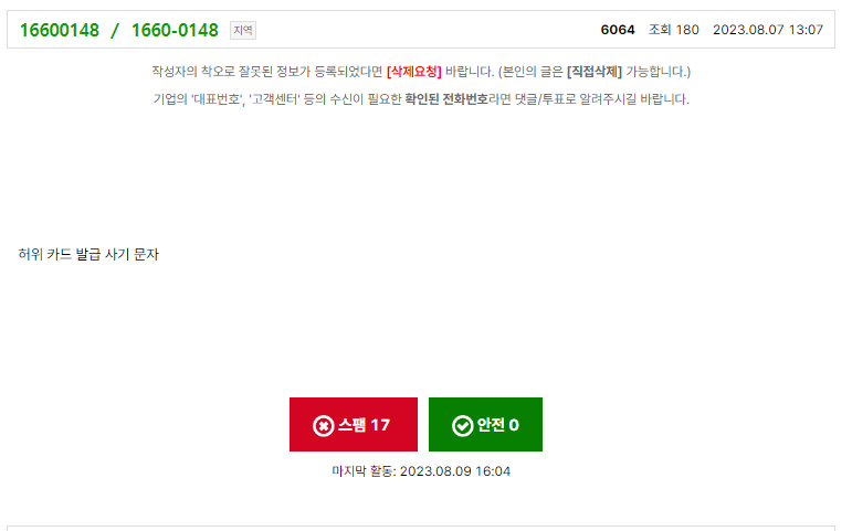 | 롯데카드 발급 확인 스미싱 피싱 +31 223 729 048 (8) | 2023.09.23 |