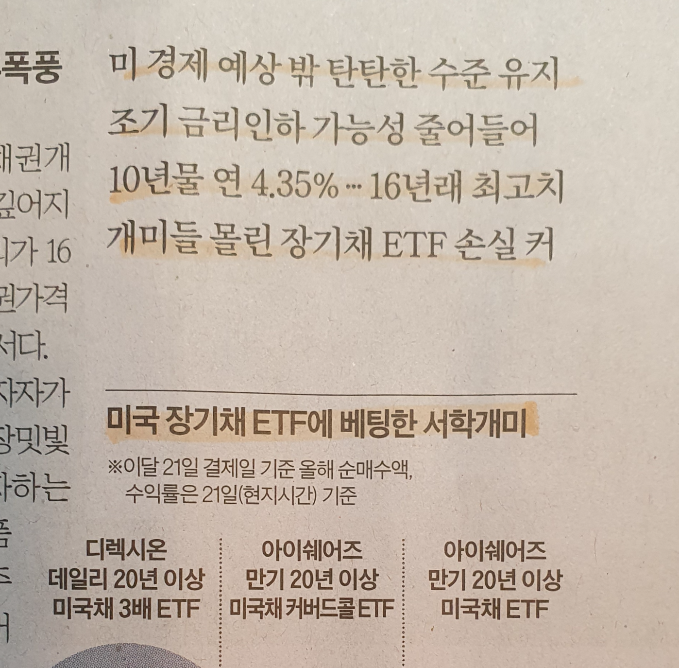 -반대급부로 개미들이 올초 투자한 장기채 ETF는 손실치가 큰 상황