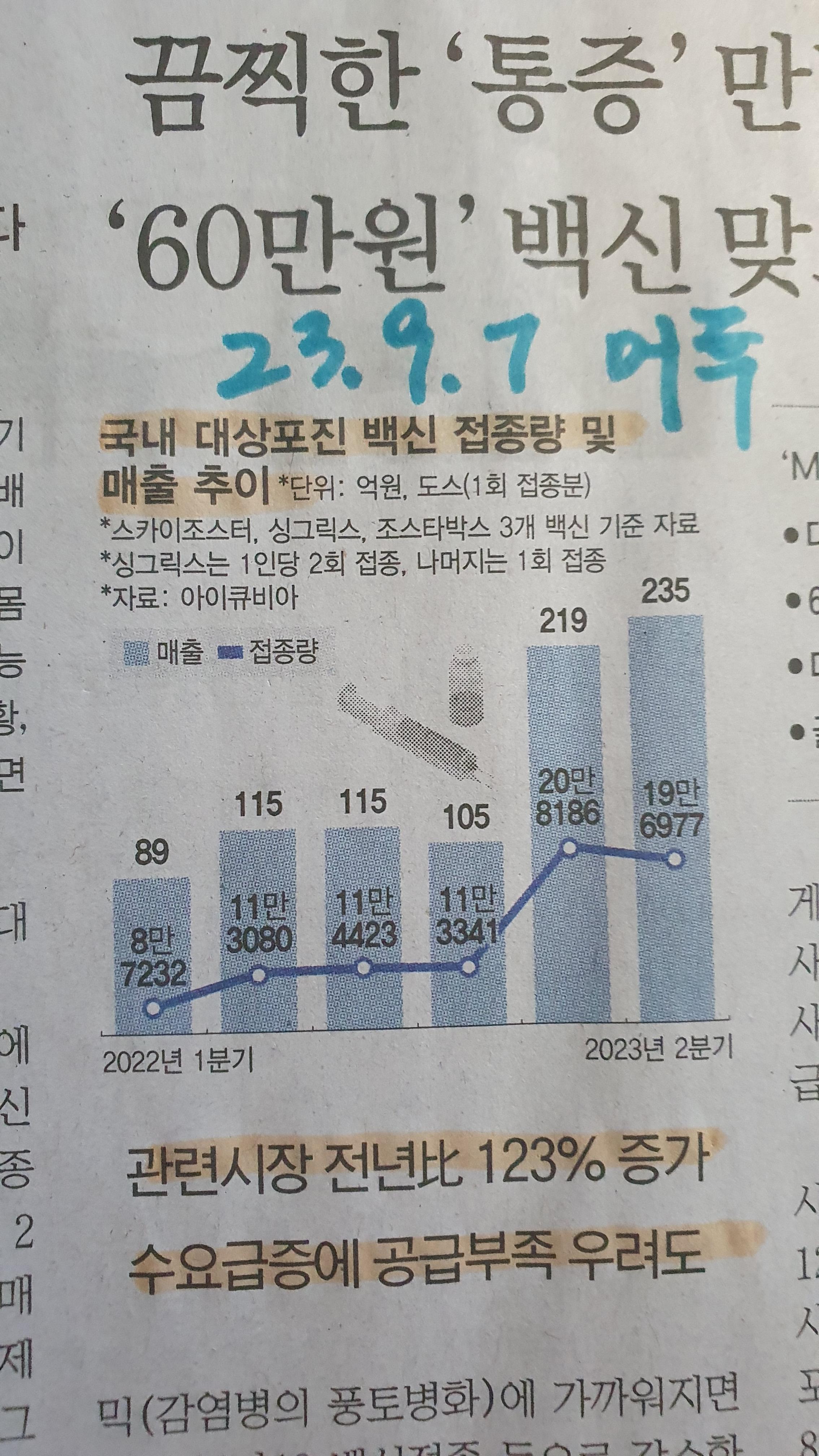 -대상포진 백신 시장 전년대비 123% 증가, 수용급증에 공급부족 우려도 있는 상태