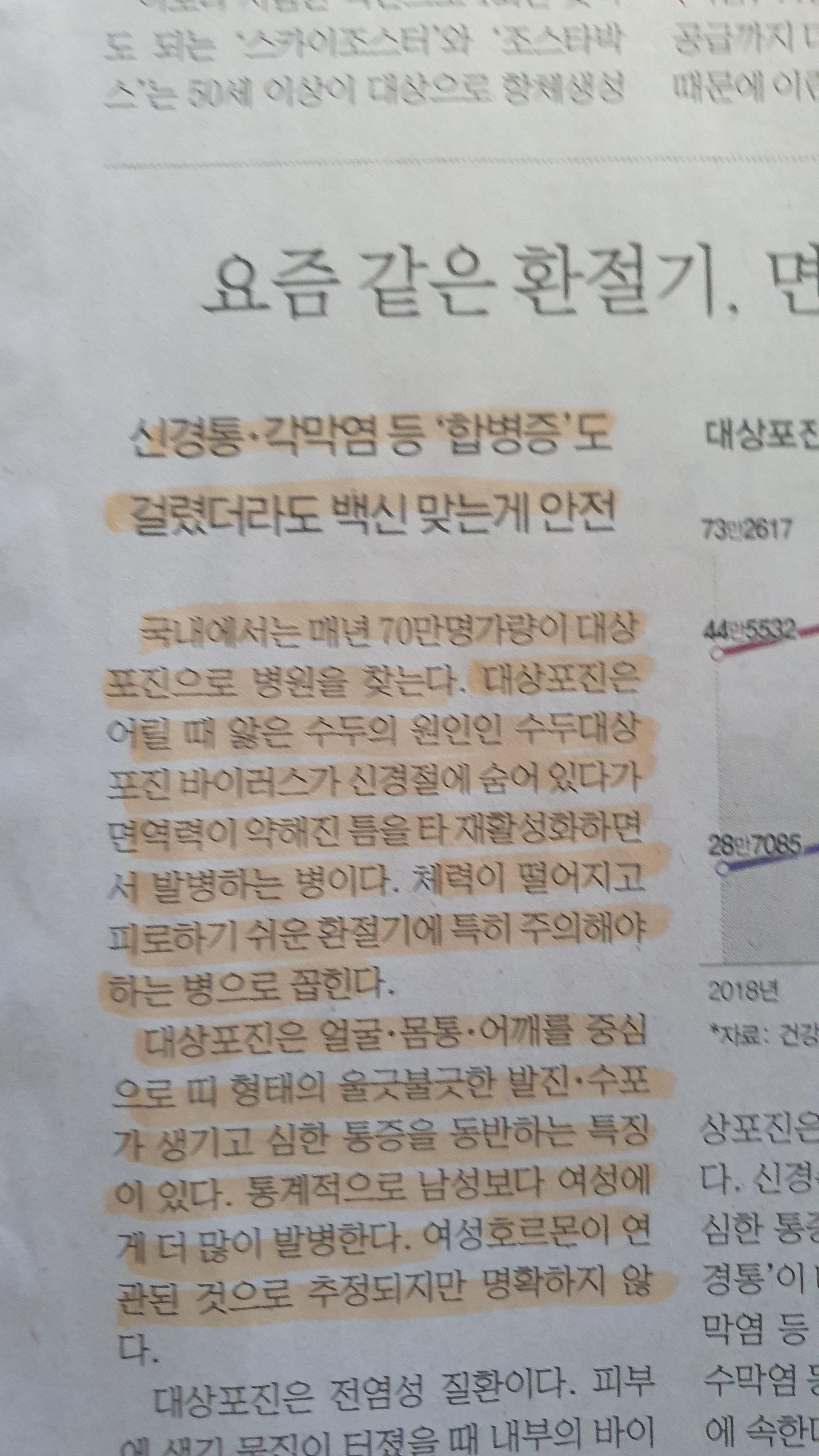 Comment)) 대상포진이 과거보다 발생되는 경우가 주변에 많은 것 같은데 백신이 있다는 것은 처음 알게 되어 스크랩. 노년층의 경우에는 대상포진 발생 시 후유증으로 더욱 힘들 수 있어 백신을 맞는 경우가 많다고 한다. 어머니가 몇 번 대상포진이 상황이 있어 지금이라도 백신접종을 도와드려야겠다.