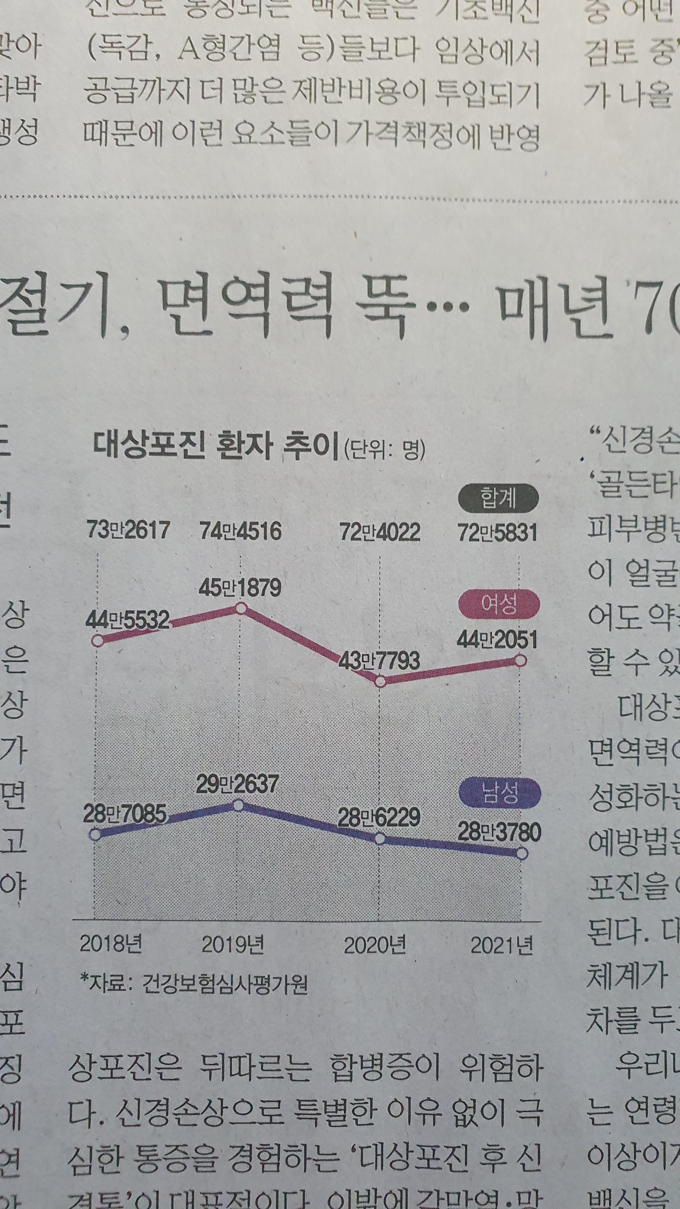 -대상포진 백신 시장 전년대비 123% 증가, 수용급증에 공급부족 우려도 있는 상태