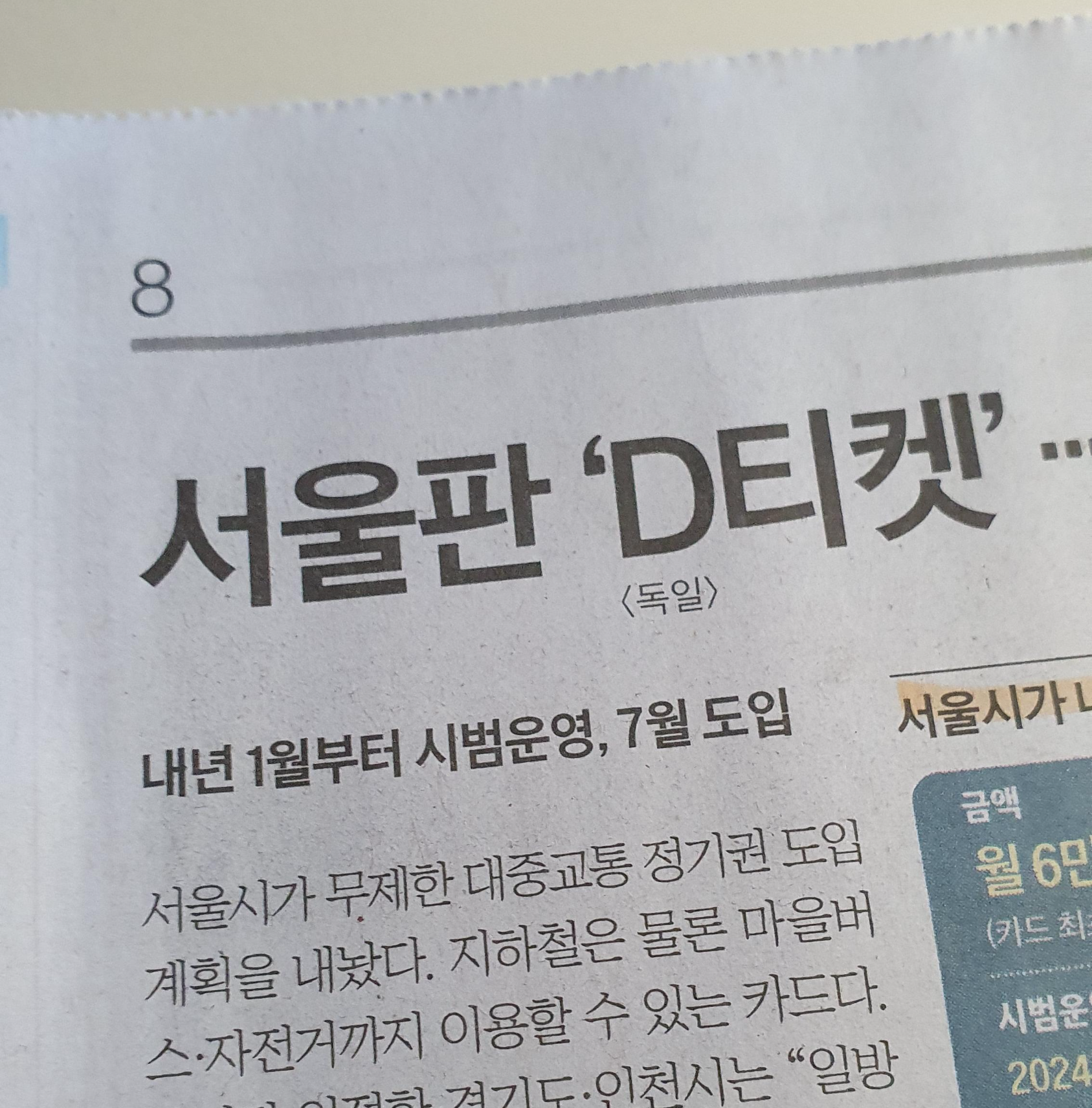 -독일의 도이칠란트 티켓 D티켓을 벤치마킹한 서울시의 기후동행카드