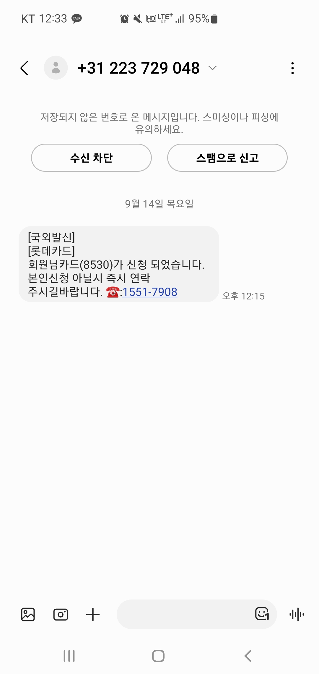 허위 카드 발급 사기 문자 스미싱