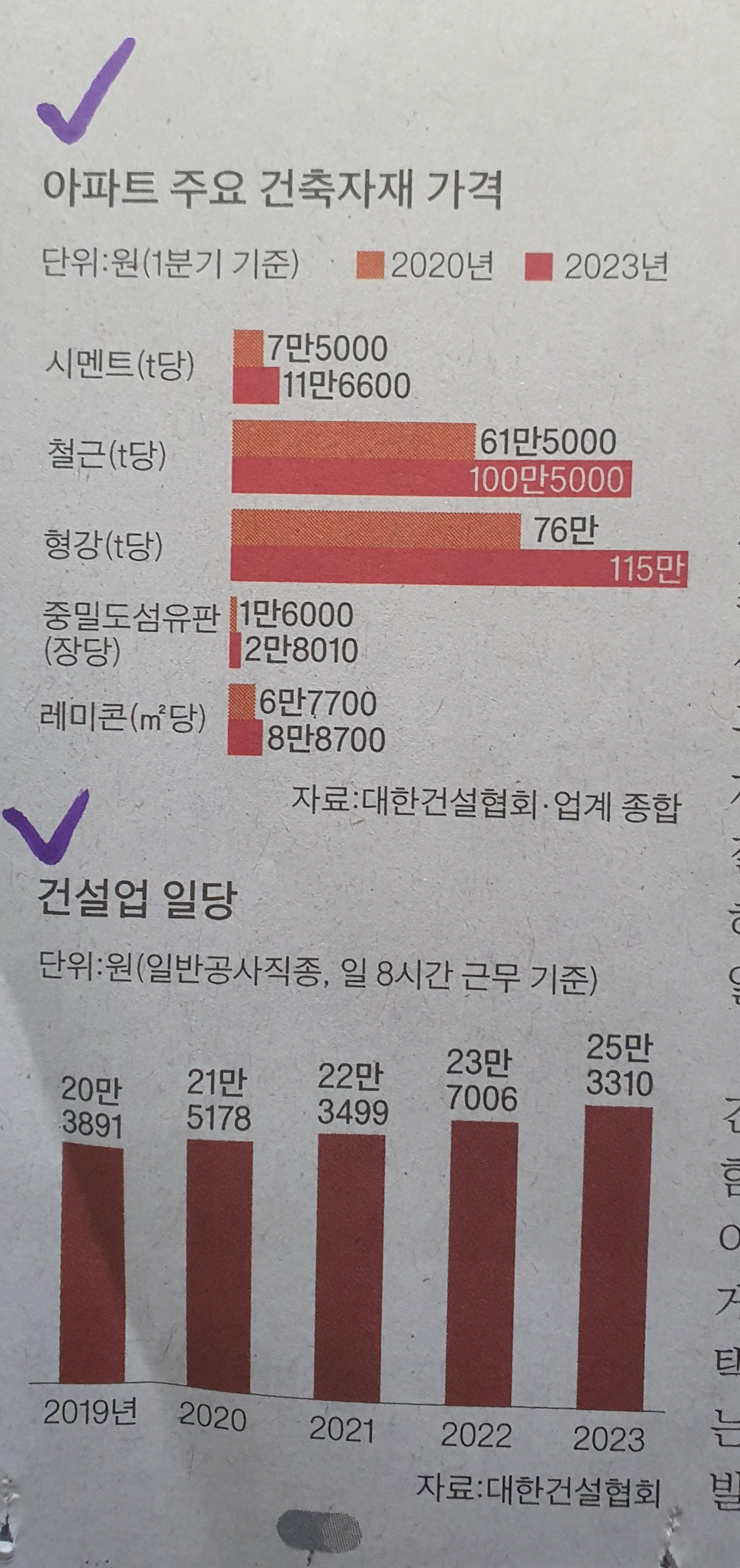 -건축자재 값과 인건비까지 모두 상승으로 건설시 기본 가격자체가 올라가는 상황