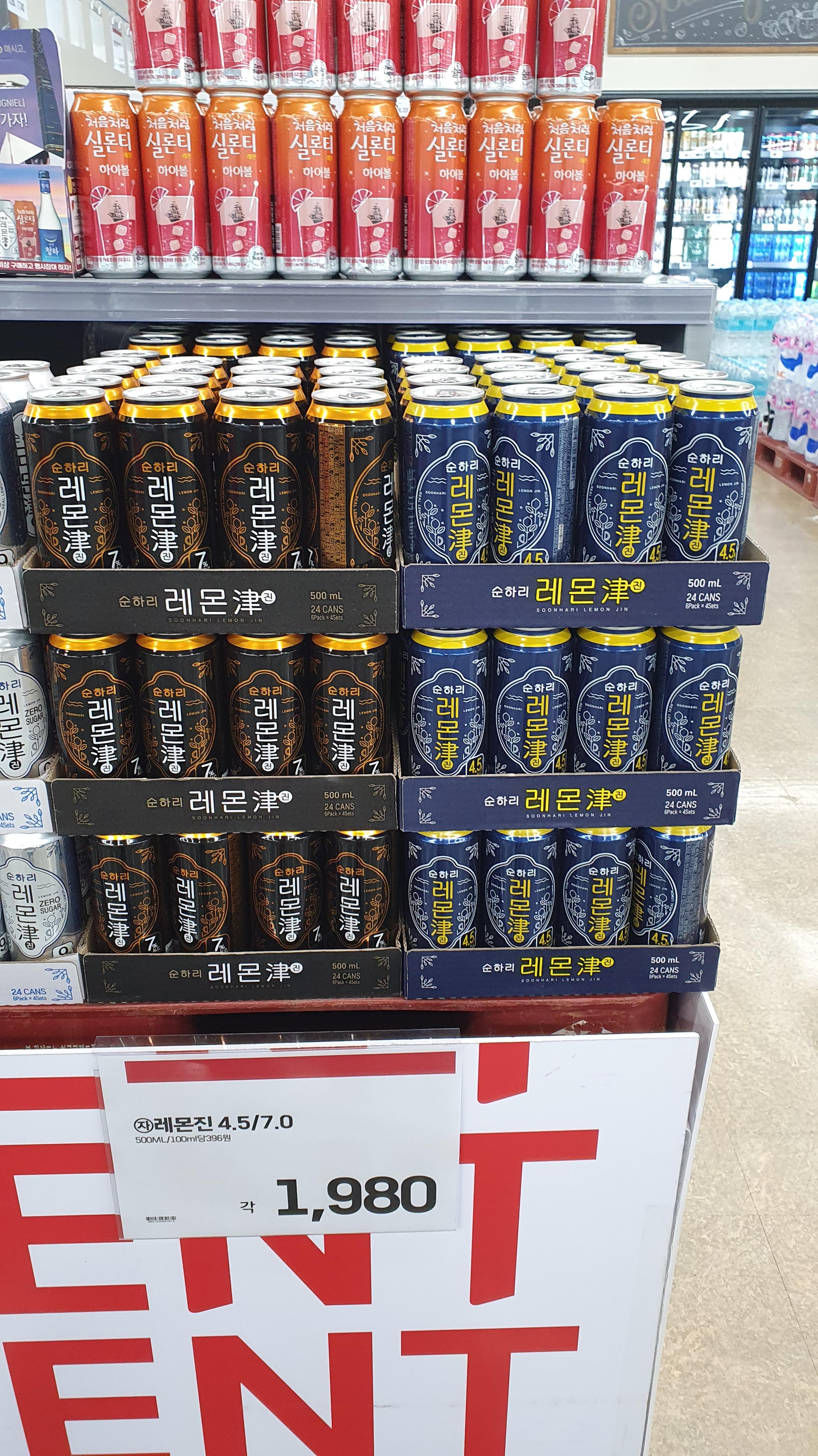 5) 순하리 레몬진 4.5 도 / 7.0 도 : 각 1,980원