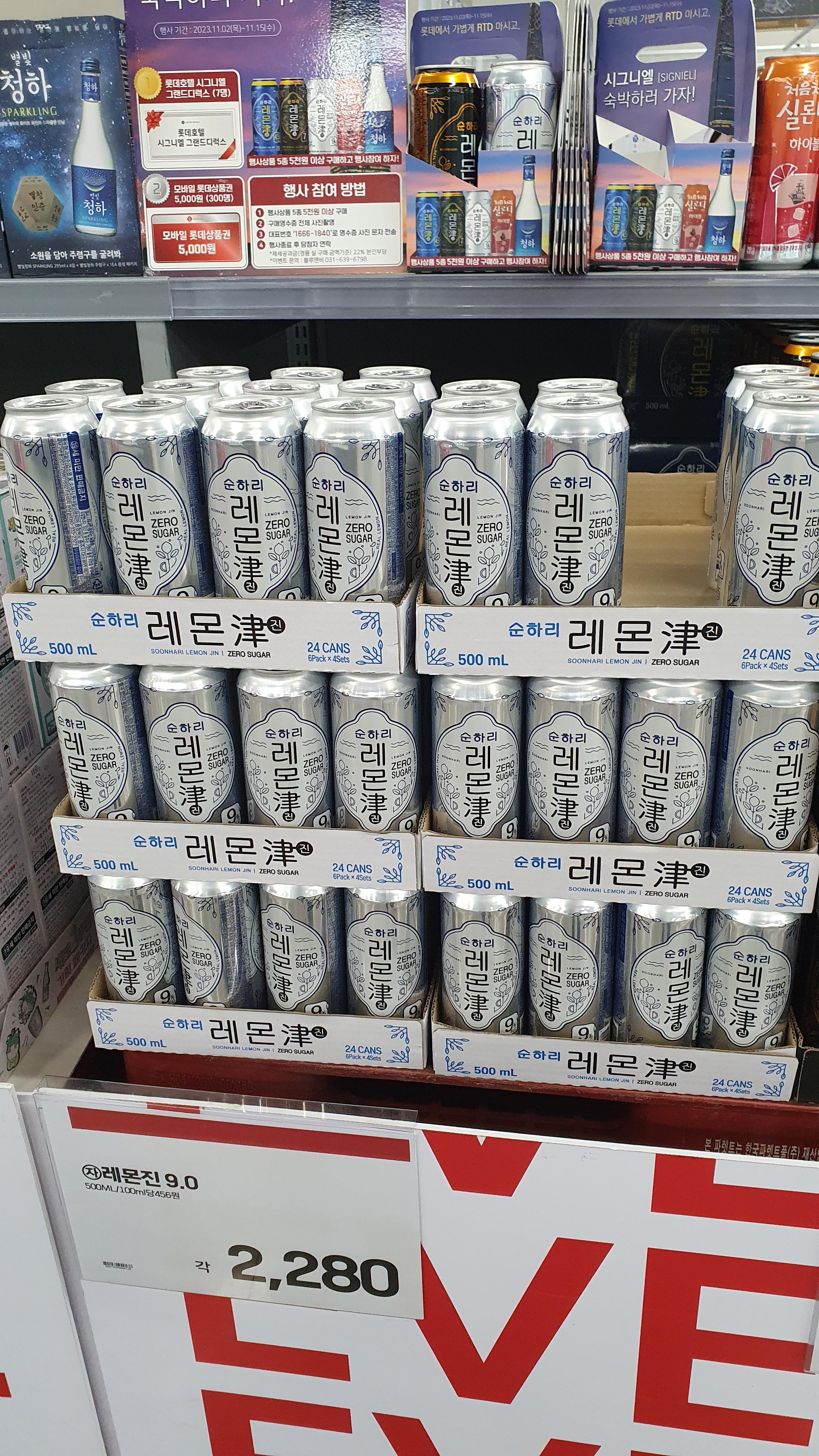 이번 시즌 제로 칼로리 제품으로 9도까지 순하리 레몬을 높여 판매 중인 순하리 레몬진입니다. 약한 도수가 아쉬웠던 순하리 마니아 분들께는 좋은 선택지가 되실 것 같습니다.