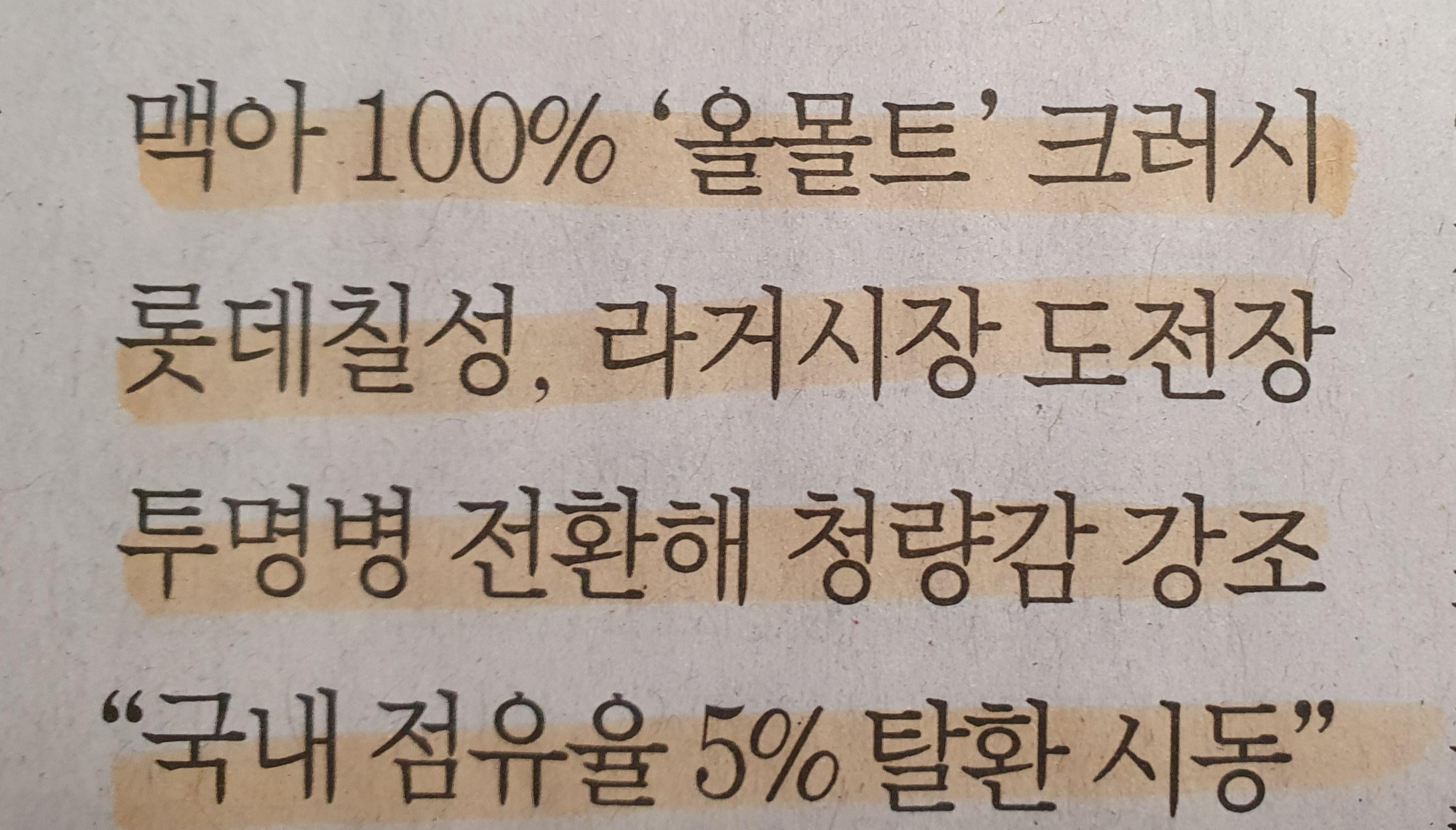 -롯데의 목표는 국내 점유율 5%를 크러시를 통해 달성하고자 공격적인 판매 마케팅을 시작할 예정