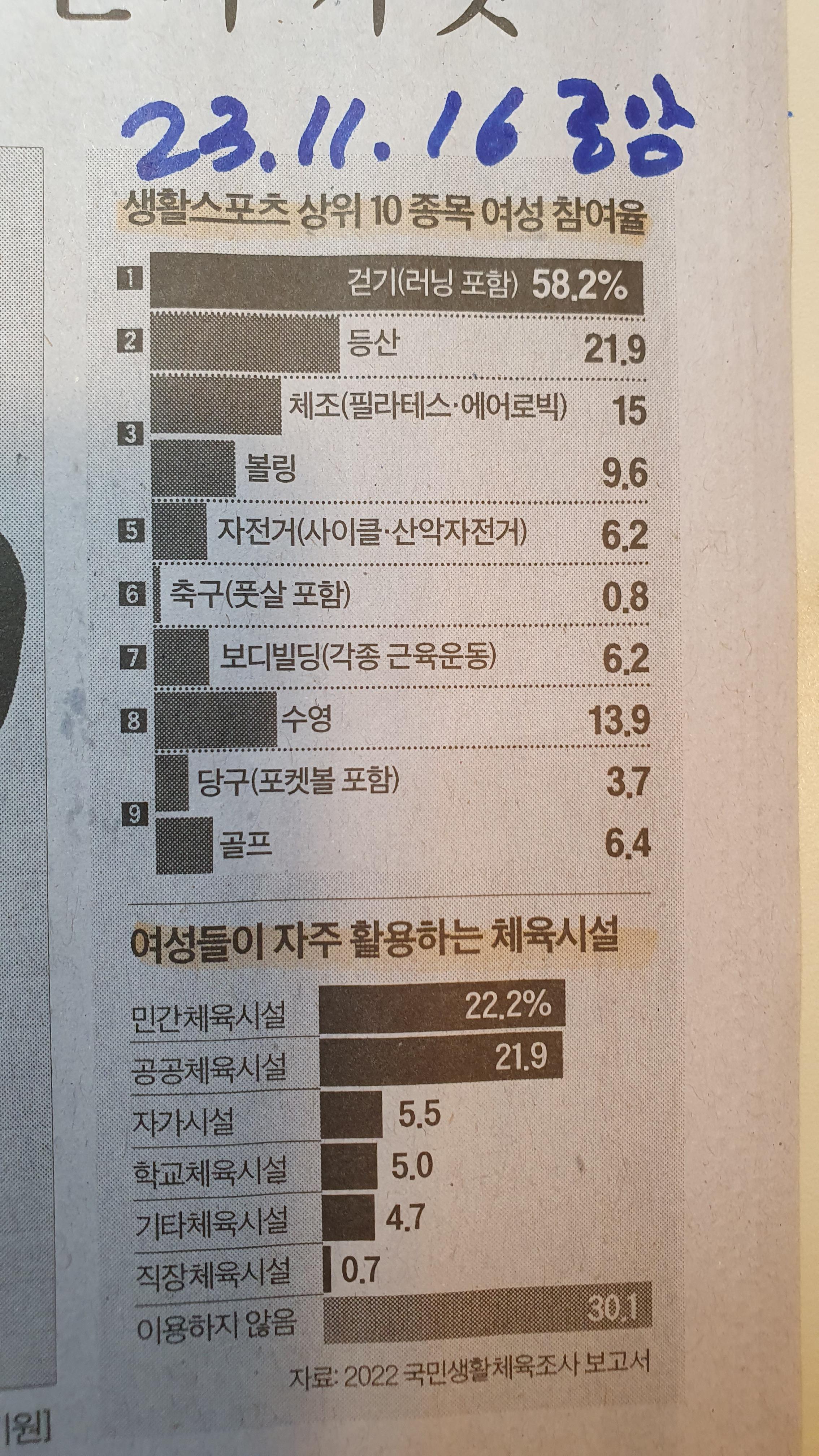 여성 참여율 높은 스포츠는 무엇? 솔로 필체크!! 중앙 23.11.16