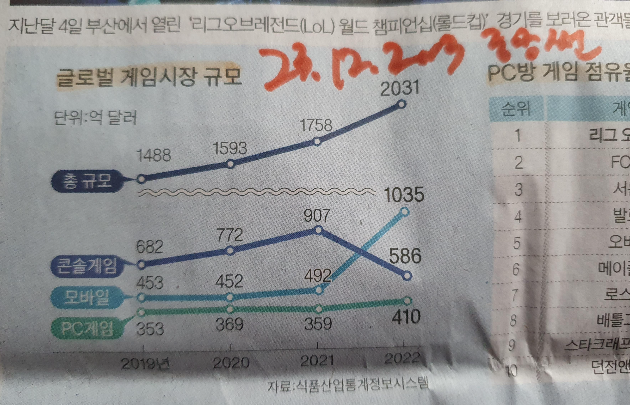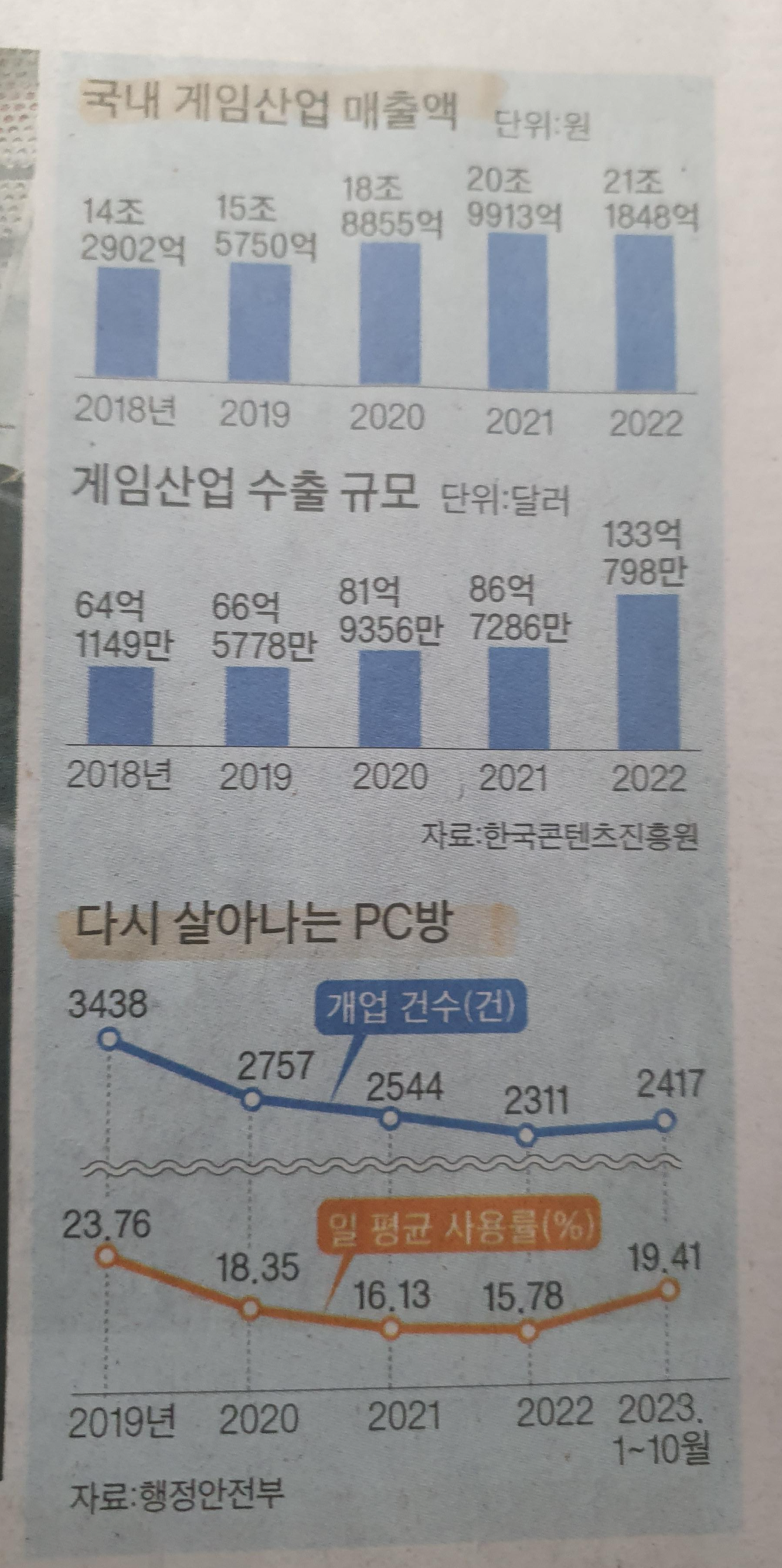 -게임에 대한 인식은 현재도 대한민국 사회 긍정보다는 부정에 가까운 감정이지만, 산업적 비지니스적인 측면에서 쌓아온 인프라와 능력이 있기에 더욱 국가에서도 키우는 방향으로 산업을 이끌 것으로 생각된다. 풀뿌리인 피시방 사업도 코로나시즌 주춤하였지만 현재는 다시 반등하여 올라가고 있다.