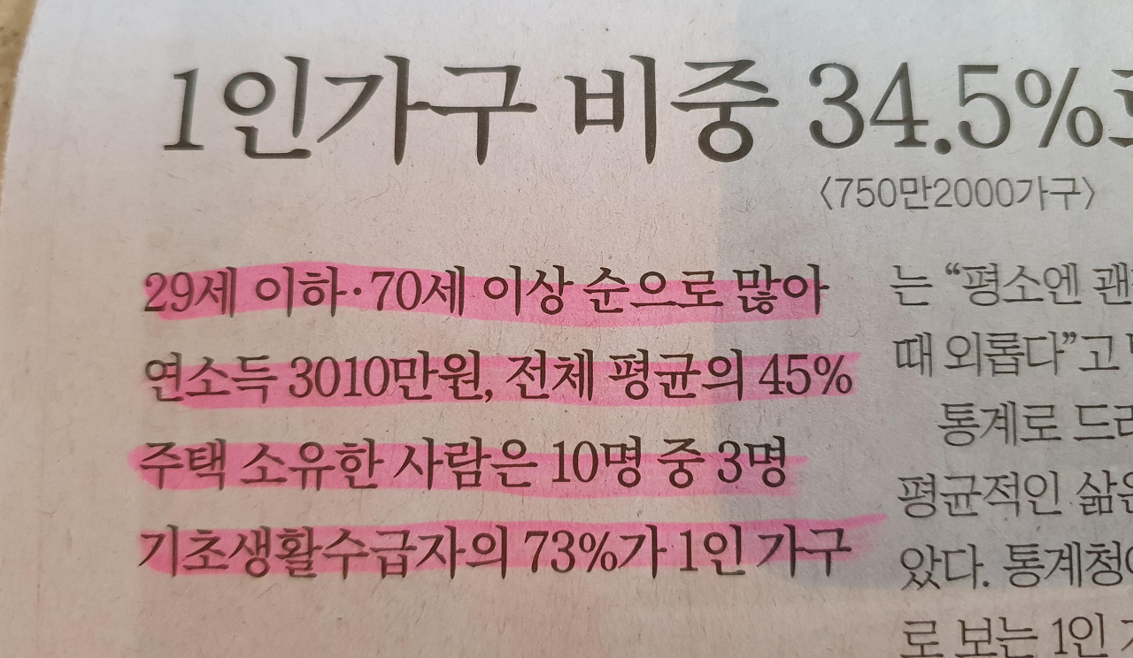-1인 가구인 만큼 2인이상 가구에 비해서는 당연히 연소득은 절반정도의 수준으로 구성