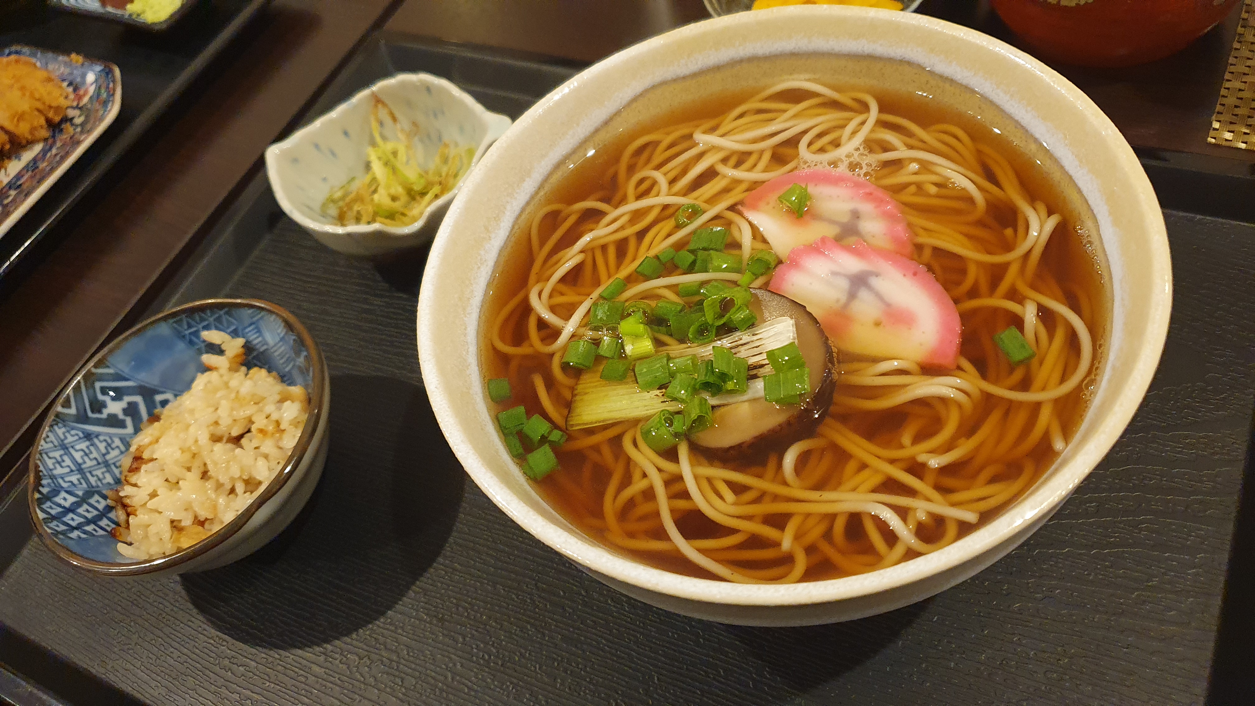 주문은 소바 기본과 소바에 돈가스 정식을 주문하였다.