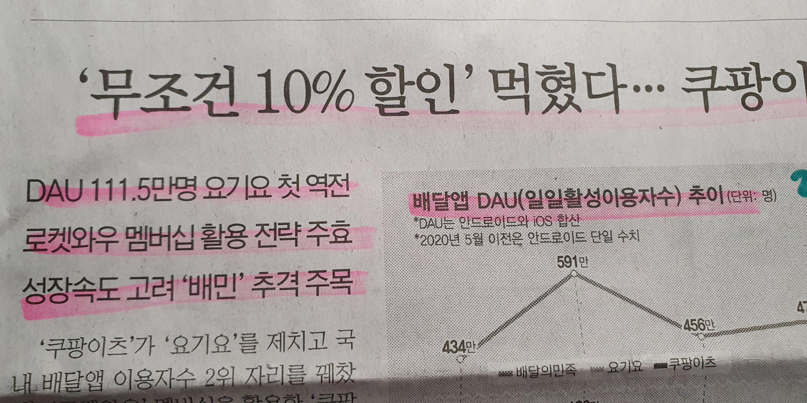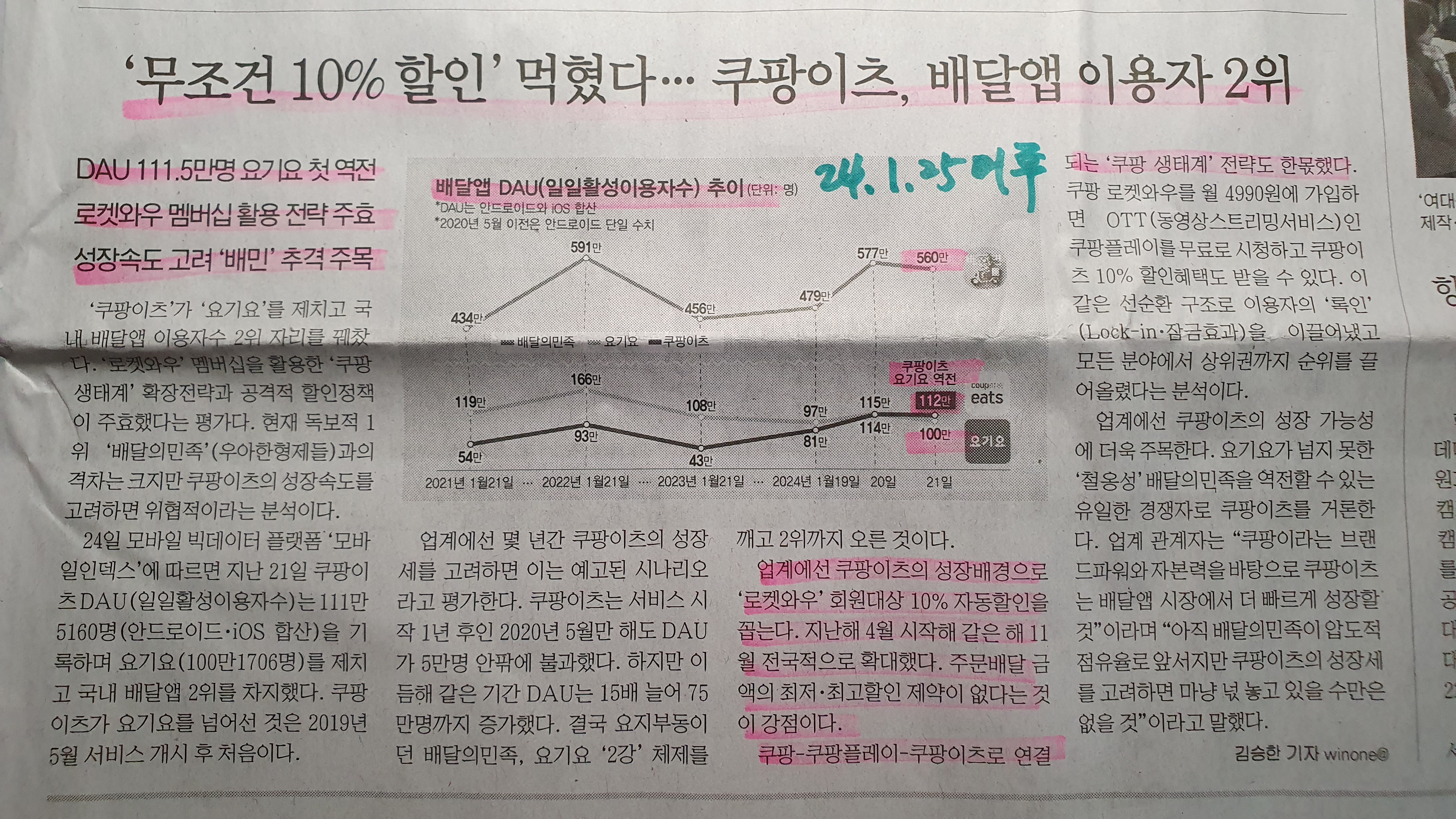 -기사는 쿠팡이츠 요기요 역전에 대한 기사이나, 광고성 같은 느낌.