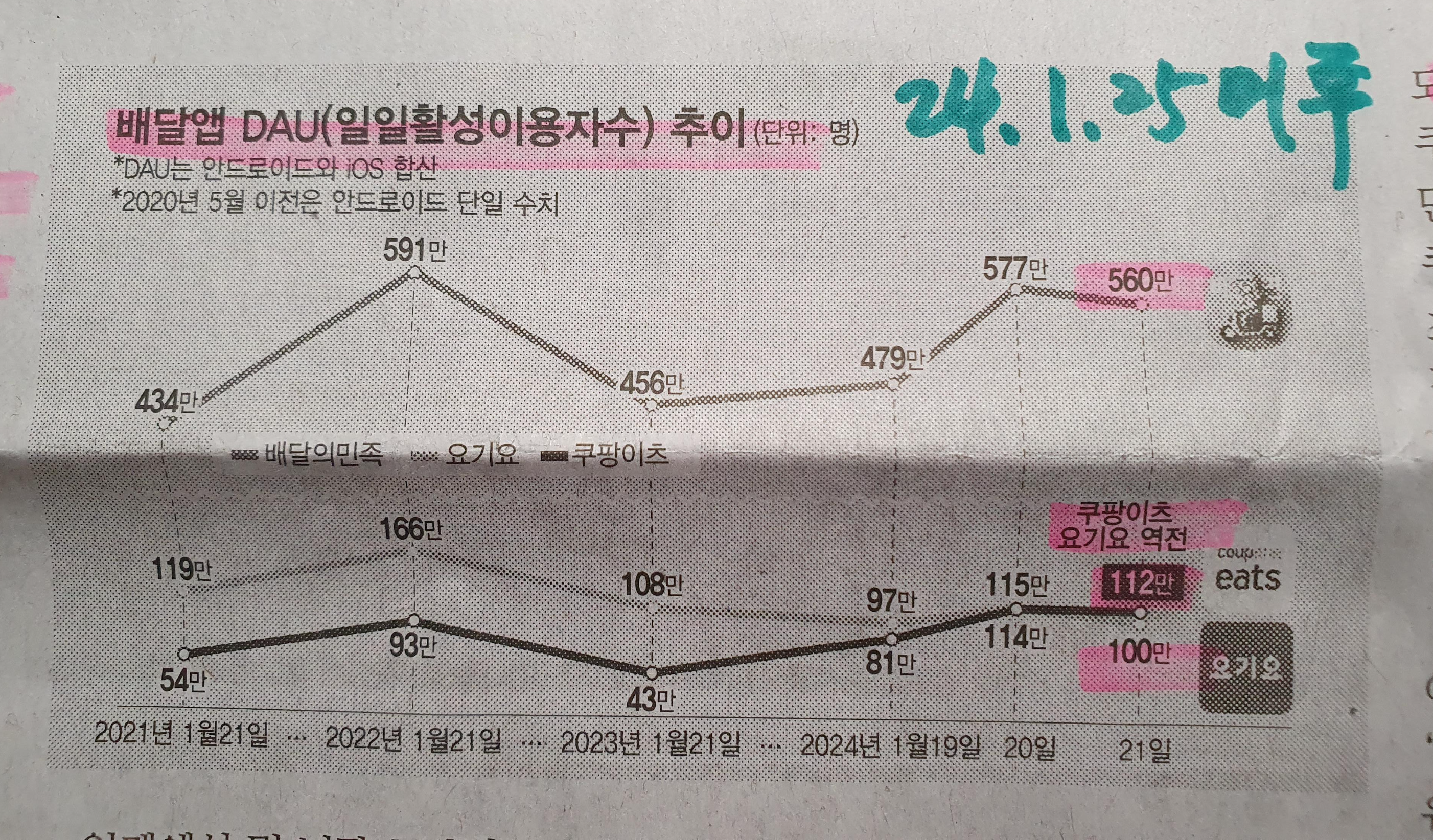 여전히 배민, 쿠팡이츠, 요기요 여전히 비지니스는 꾸준.. 24.1.25 머투