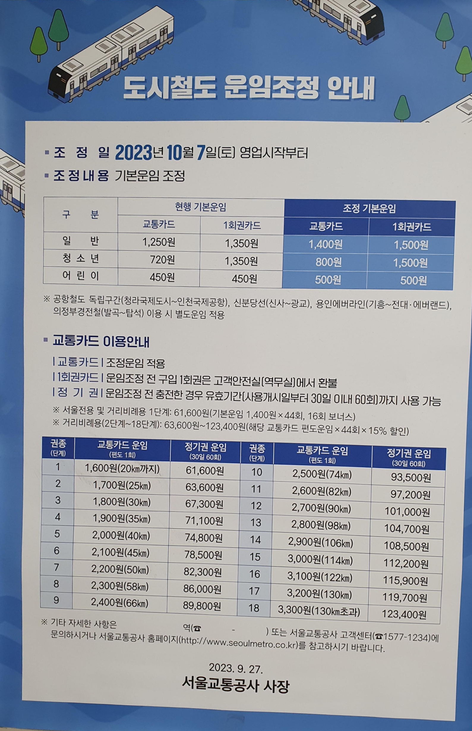 -교통카드 또한 이에 맞추어 운임 조정