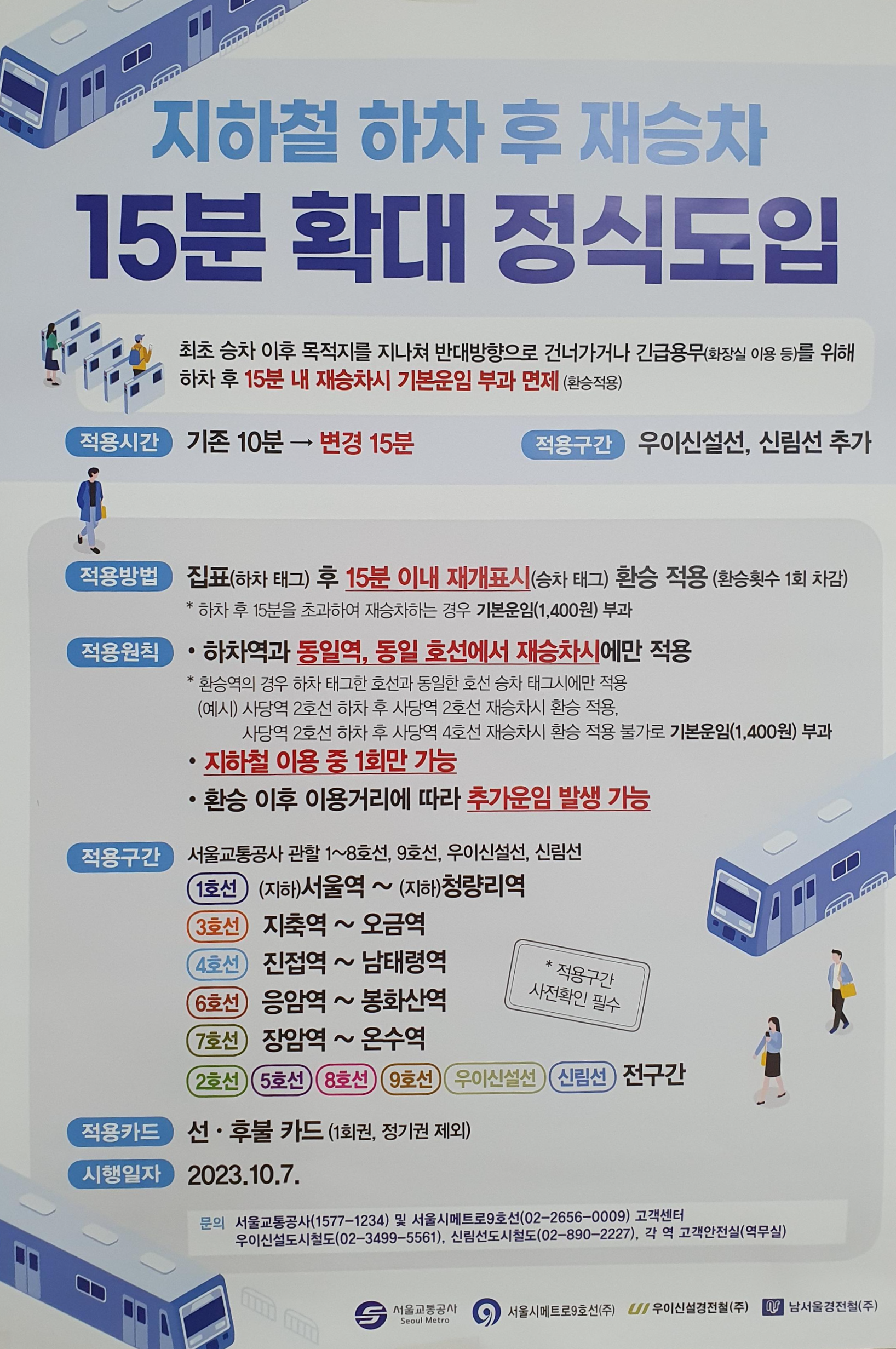 -추가 지하철 하차 후 재승차 10분에서 15분 확대 정식 도입