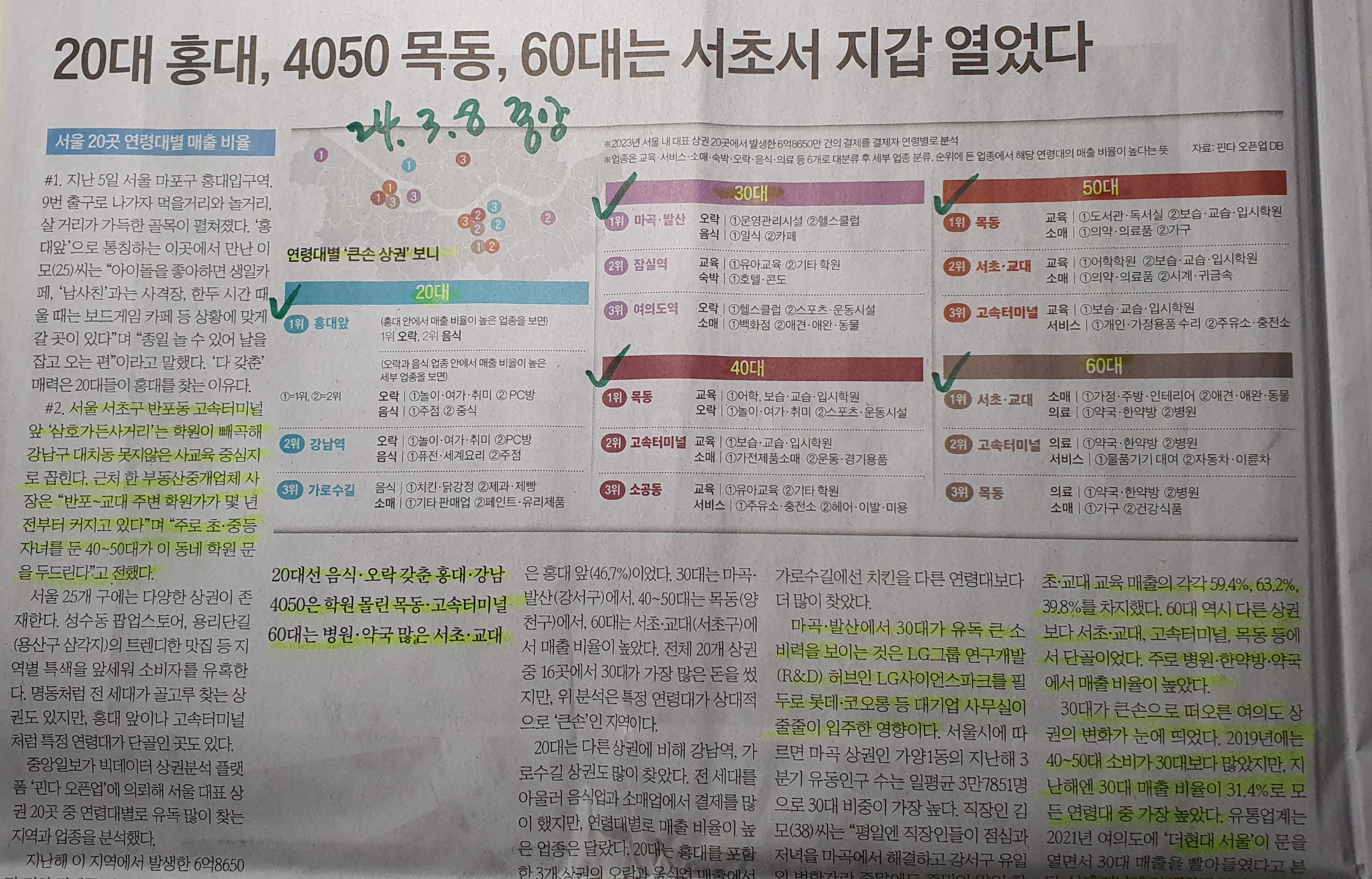 나이별 연령대별 큰손 상권, 지역소비 패턴은? 24.3.8 중앙