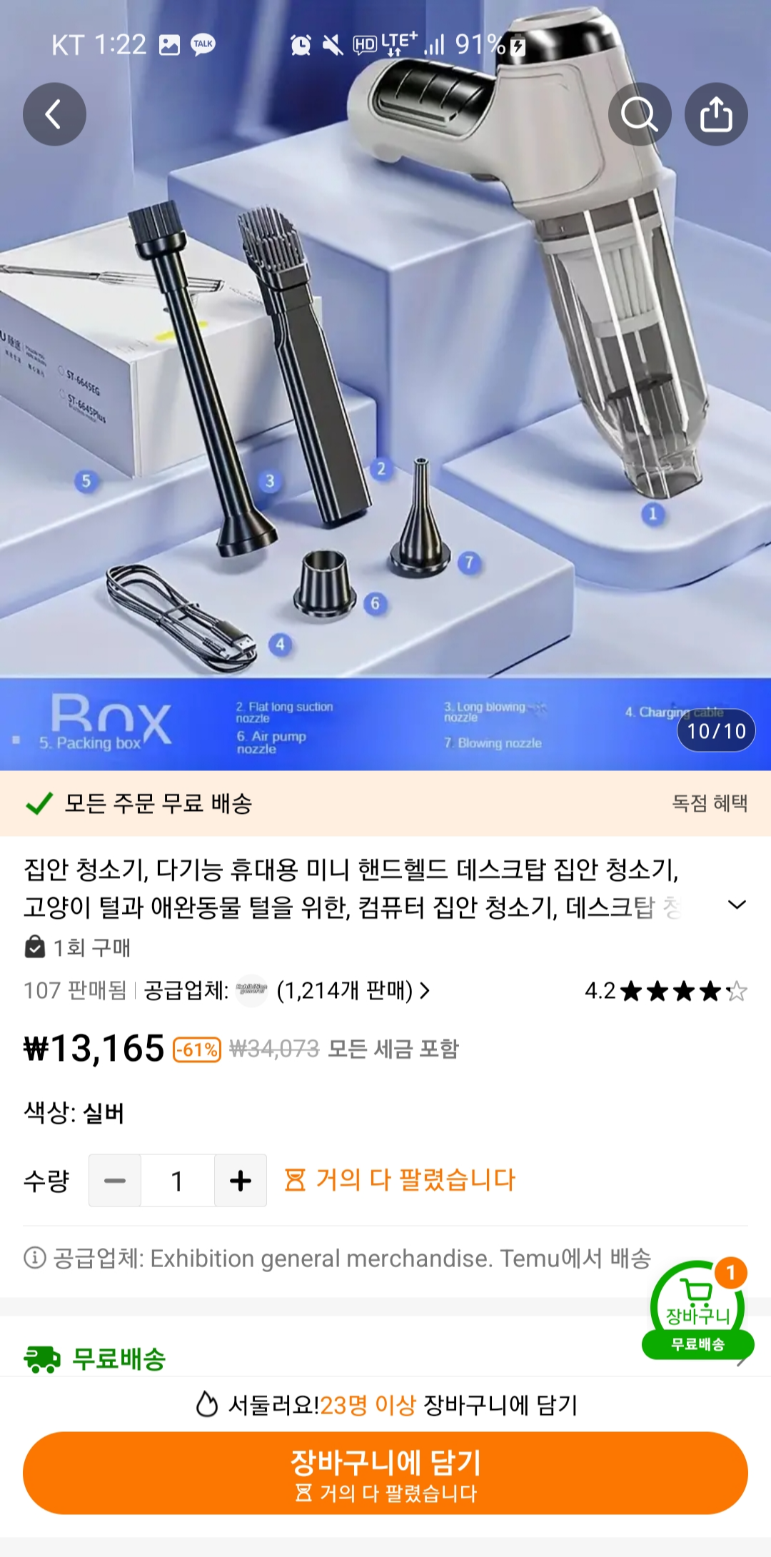 테무를 이용하고 난 후, 초반에 구입한 테무 휴대용 미니 청소기