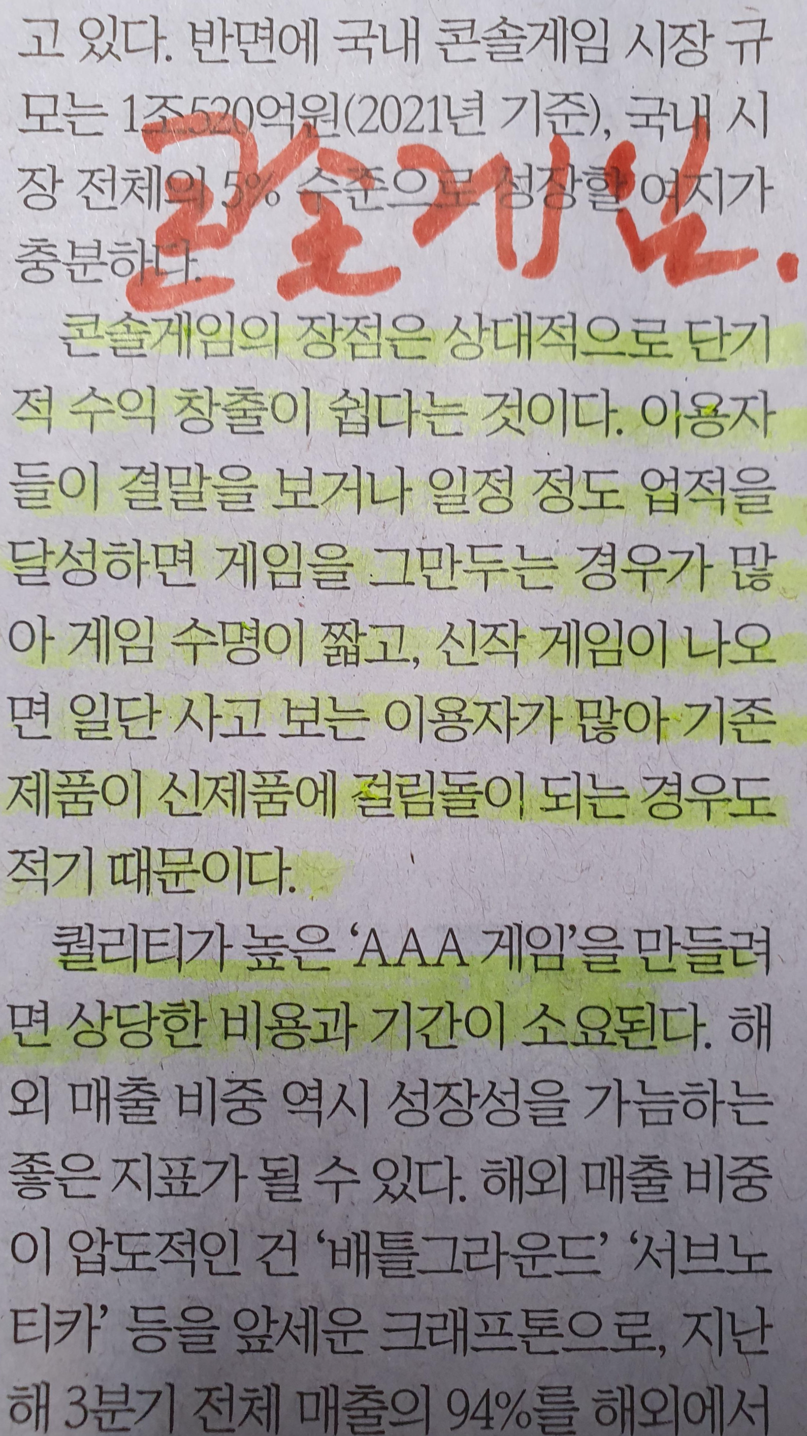 -한국 게임의 시장의 경우 온라인 게임 위주지만, 콘솔게임 시장의 성장을 바라보며 이제는 원게임 멀티유즈 시대이기에 콘솔, 피씨를 함께 하는 시대를 맞이하고 있다.