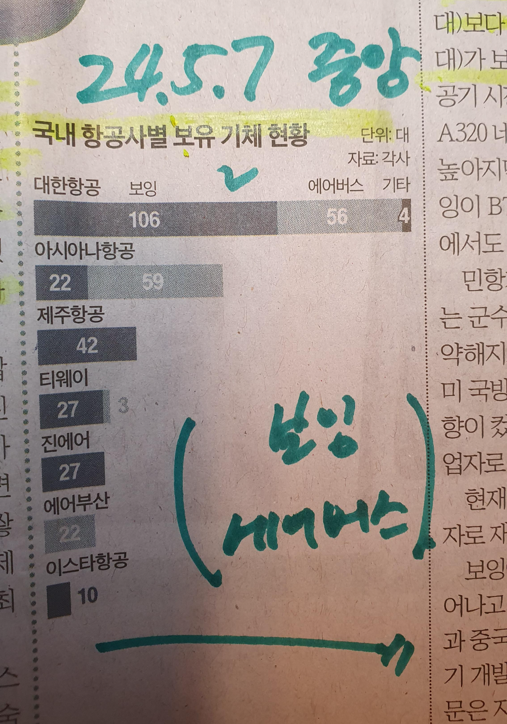 보잉사의 몰락은 GE식 업무형태? 국내 항공사별 항공기 보유 사항 24.5.7 중앙