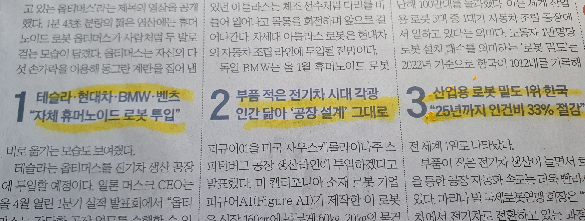 -현기를 비롯하여 테슬라,BMW, 벤츠, 니오 도요타까지 모든 자동차 제조업체들은 로봇화에 박차를 가하고 있는중