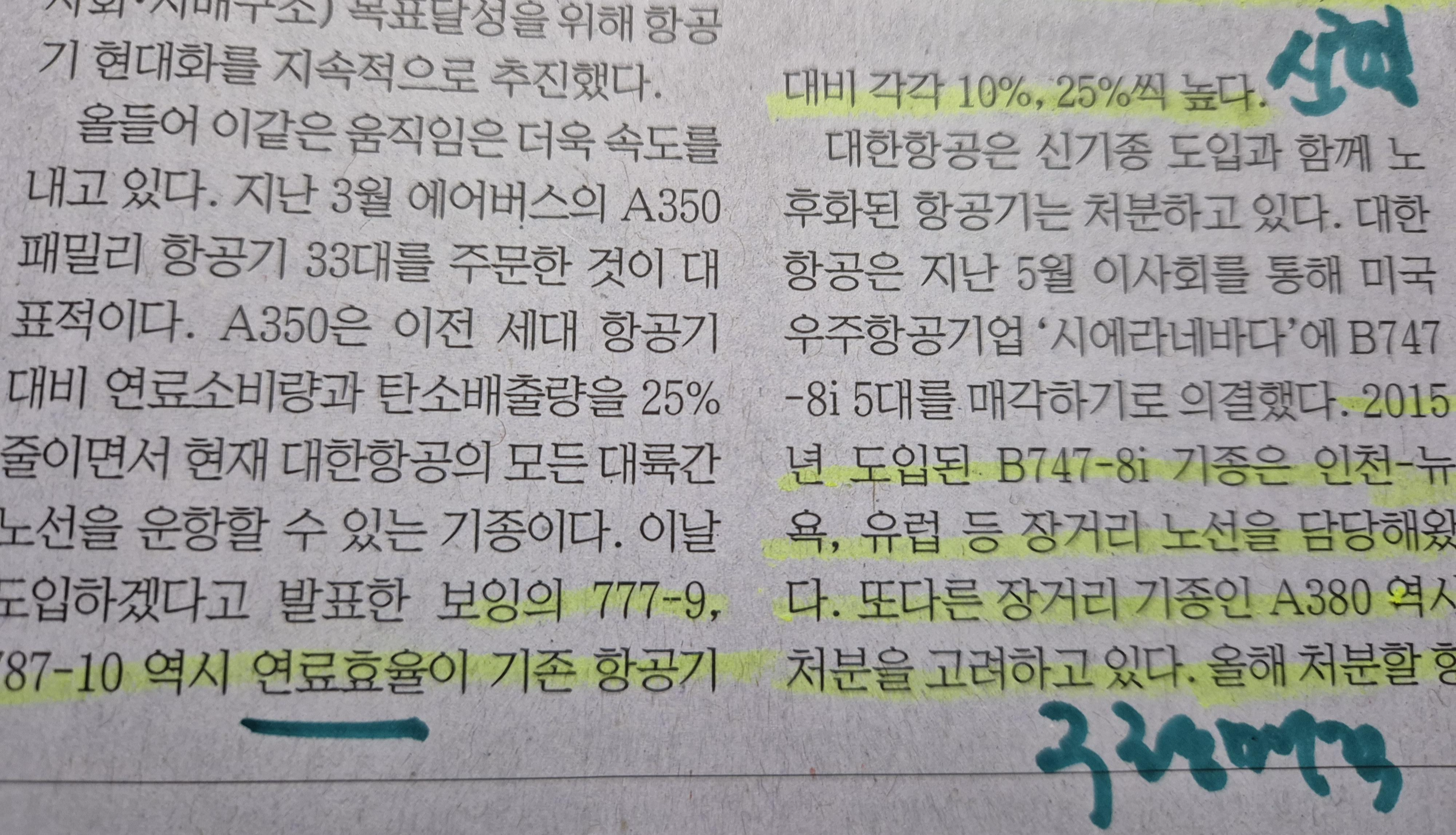-현재 대한한공이 집중하는 노선이 단거리나 중거리를 벗어나 장거리 노선에 집중할 것이라는 것이 보인다.