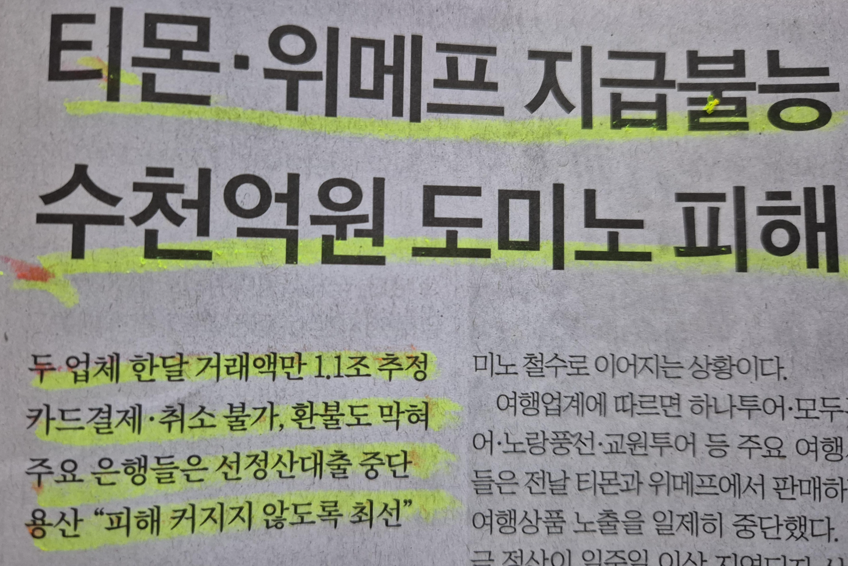 -여행과 리조트 업계는 코로나로 한방, 티몬 위메프 지급 불능으로 인한 손해로 두방째를 맞으며 비지니스에 큰 악영향을 미칠 것이라 보인다.