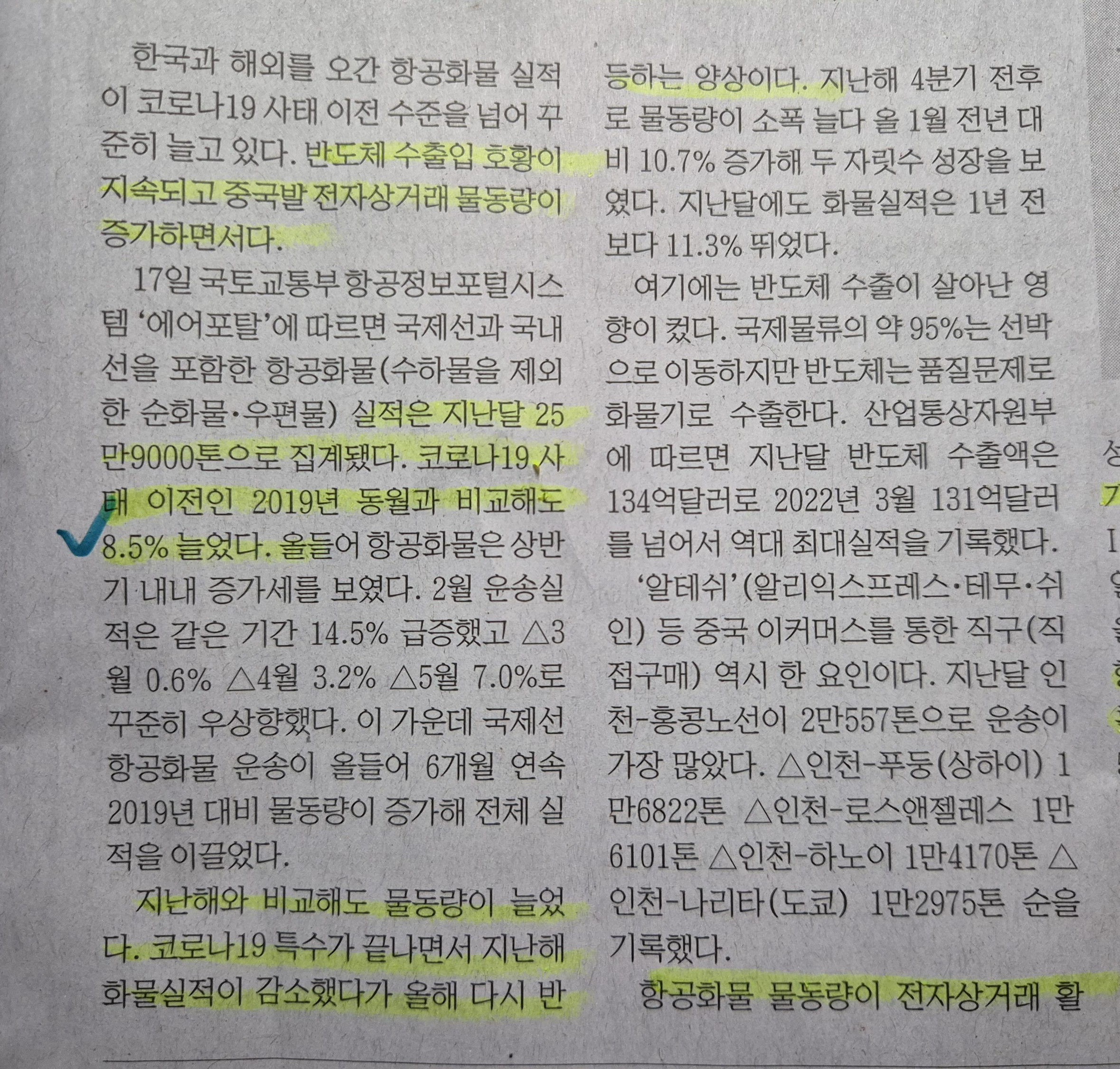 -2023년 코로나 대비 물동량이 감소함에 따라, 항공 화물 업계 고난의 행군이 2024년 시작될 것이라 예상하였지만 2023년 6월까지 평균 9% 이상은 증가하였고, 코로나 전 대비해서도 물량은 5% 이상은 증가한 것으로 보인다.