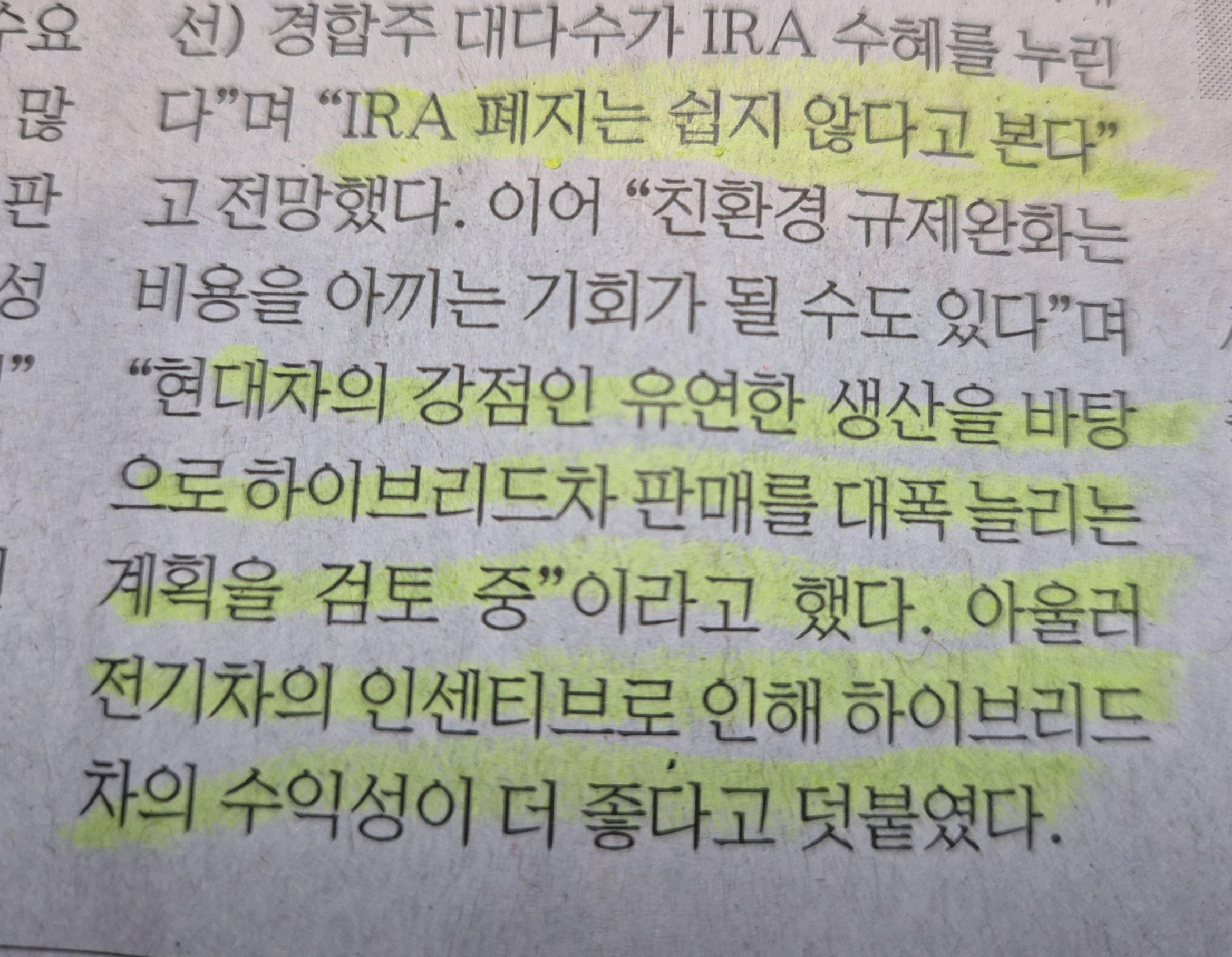 -IRA를 대비 이미 미국에 자동차 공장과 배터리를 회사들이 집중화여, 다른 일본, 대만에 비하여 미국의 세제혜택을 받을 수 있었다.