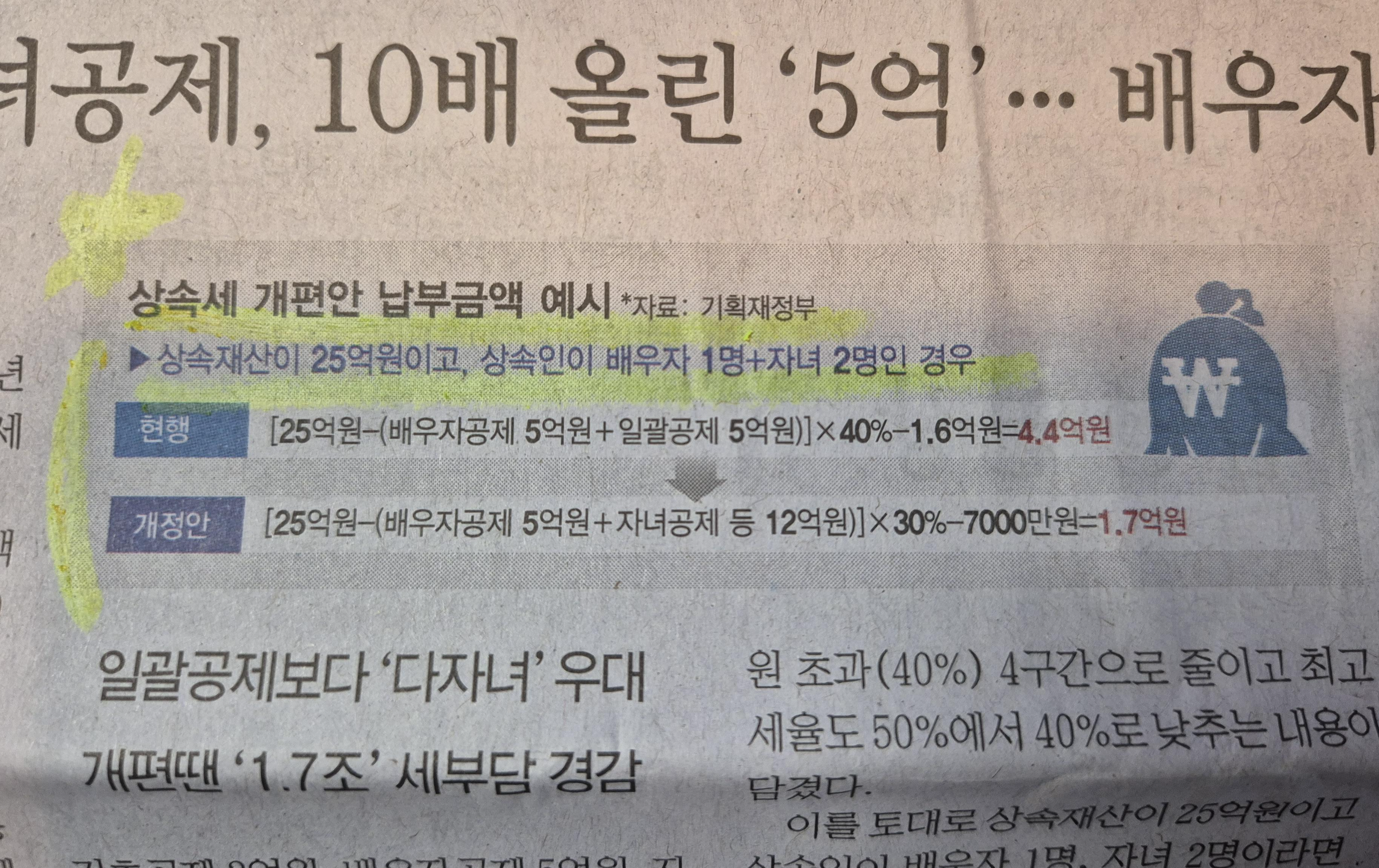 -가장 큰 부분은 자녀공제가 5천만원에서 5억 원으로 상향조정된다는 점.