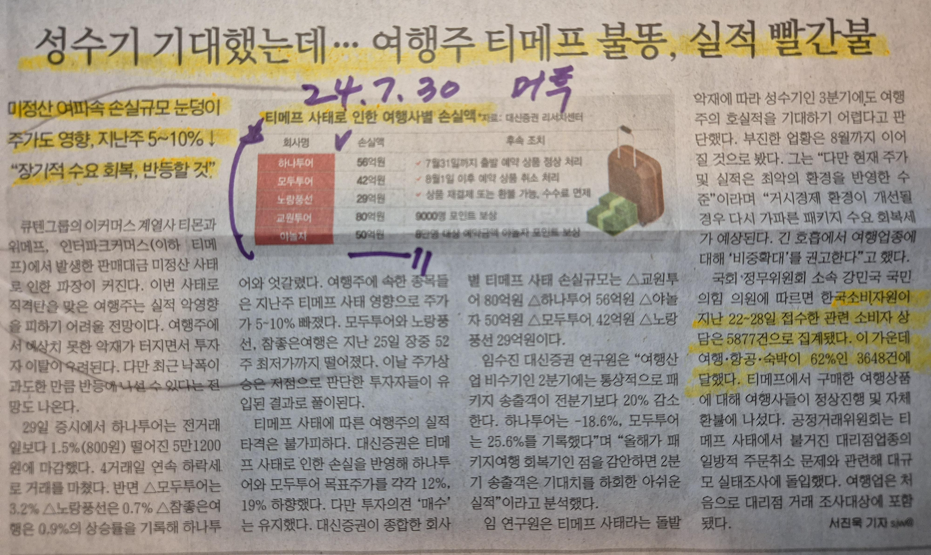 -야놀자의 경우 지분관련 부분이 있기에 예외적이며 대부분 우리가 알고 있는 여행사들은 큰 손해를 보았다. 물론 추가 작은 여행사들까지도 적어도 몇억 원의 손해를 보았을 것이라 본다.