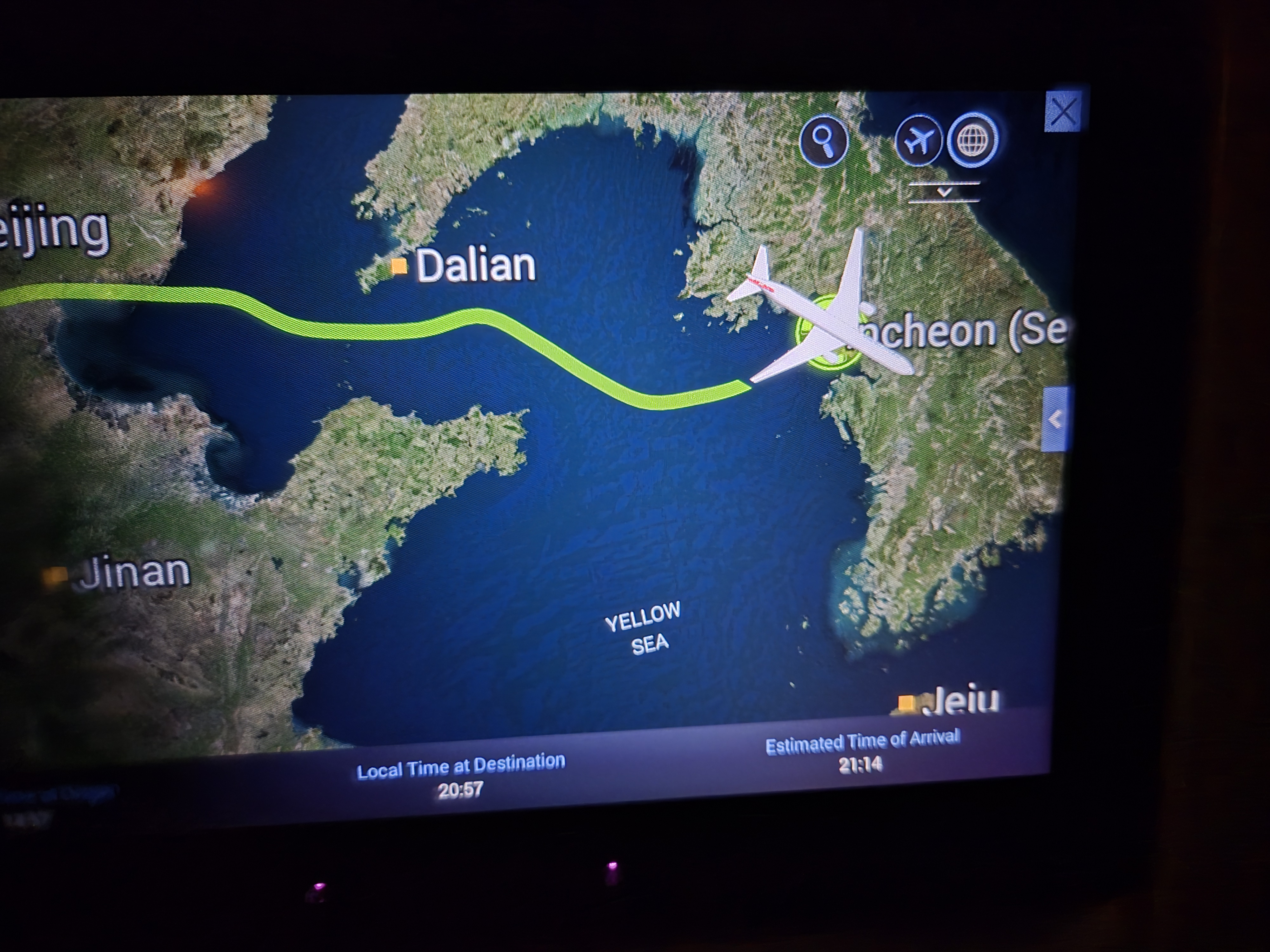 9시간의 비행 후, 인천 공항 착륙 예정이었으나,