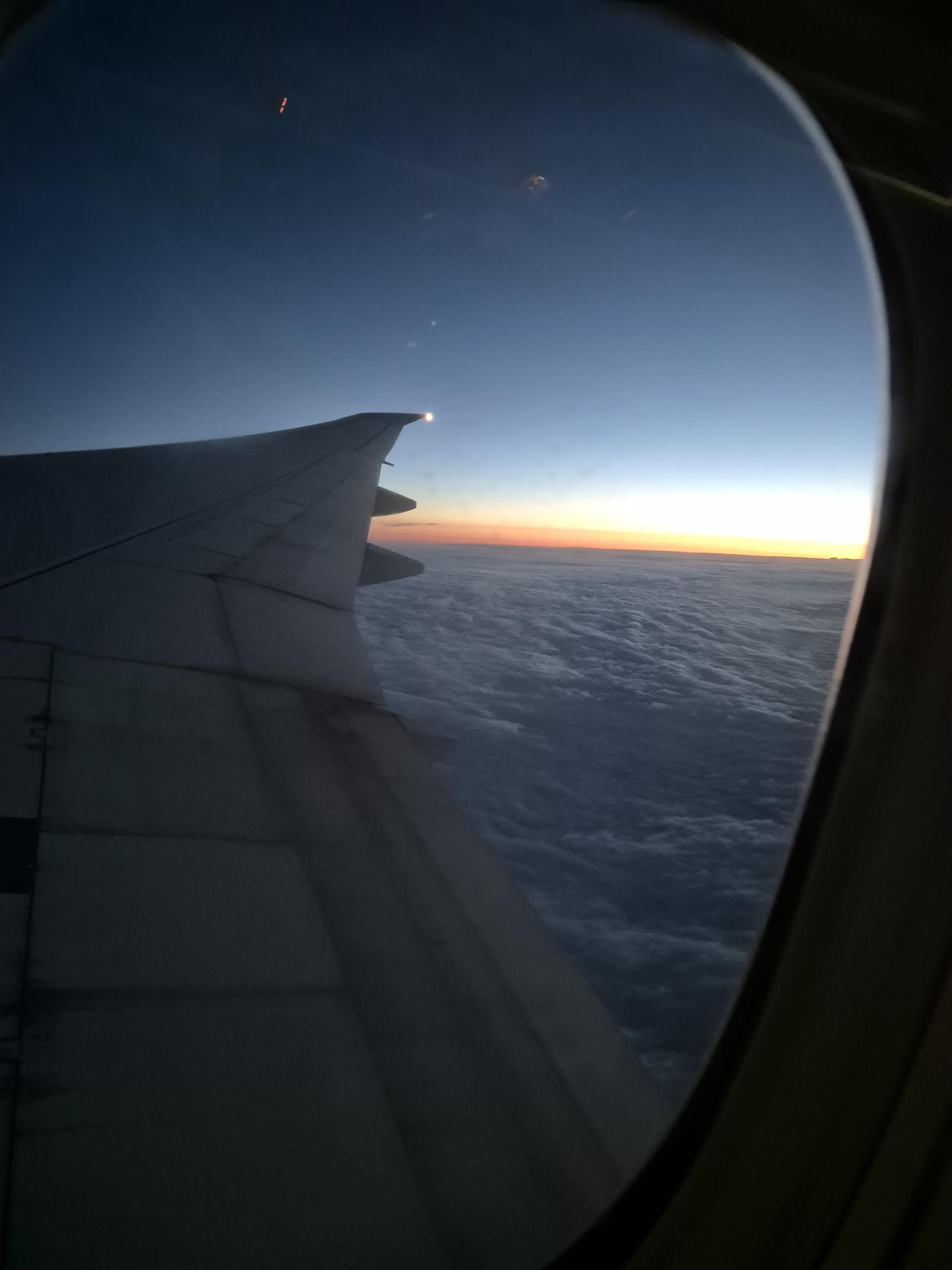 밤새 공항에서 기다리다 보니 새벽녘이 되어서야 출발한다.