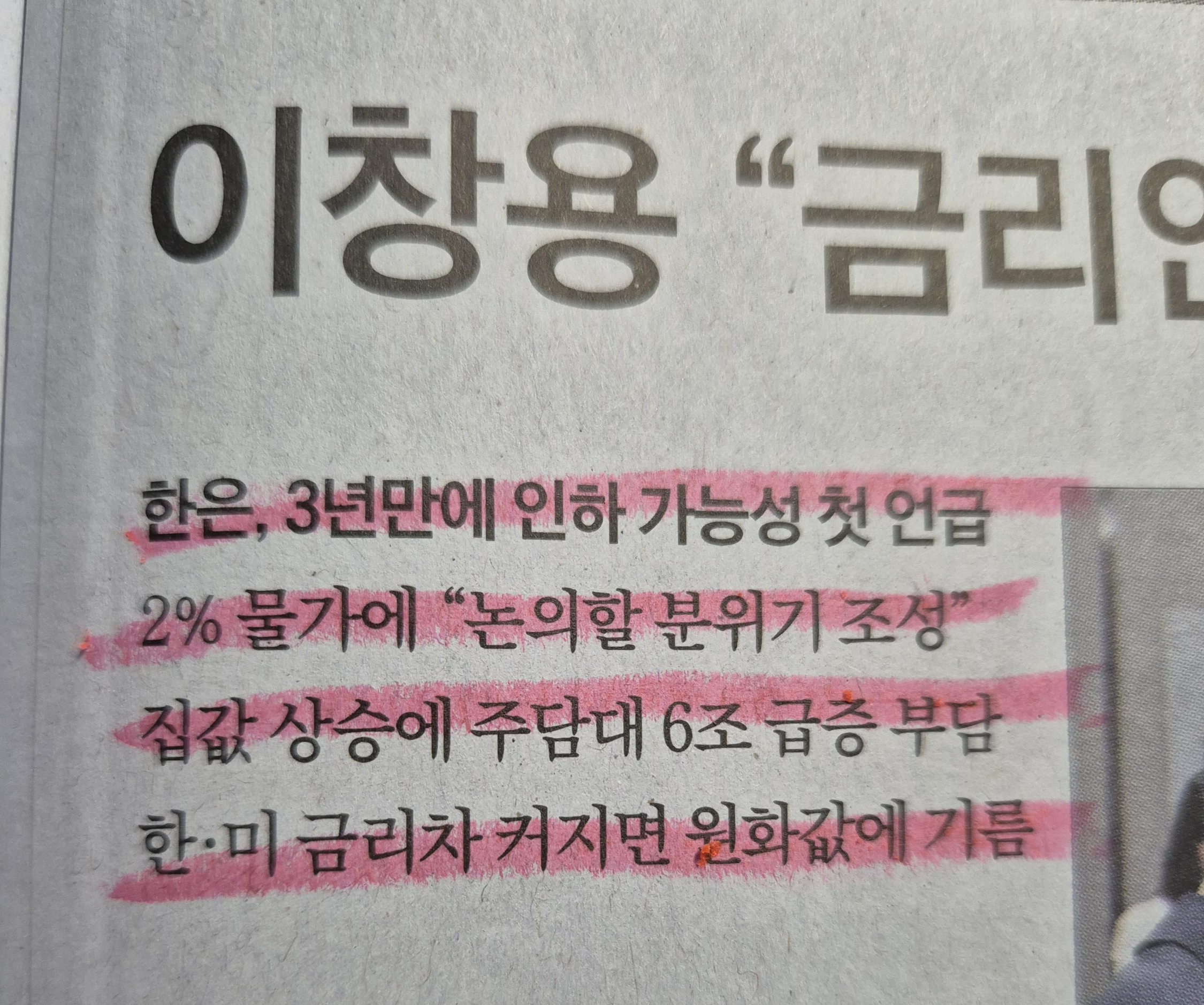 -3년간 멈추어 있는 대한민국 금리 변화 가능성, 치솟던 물가가 2%대로 안정적으로 유지하며 유동성을 높이기 위한 방향으로 보인다.