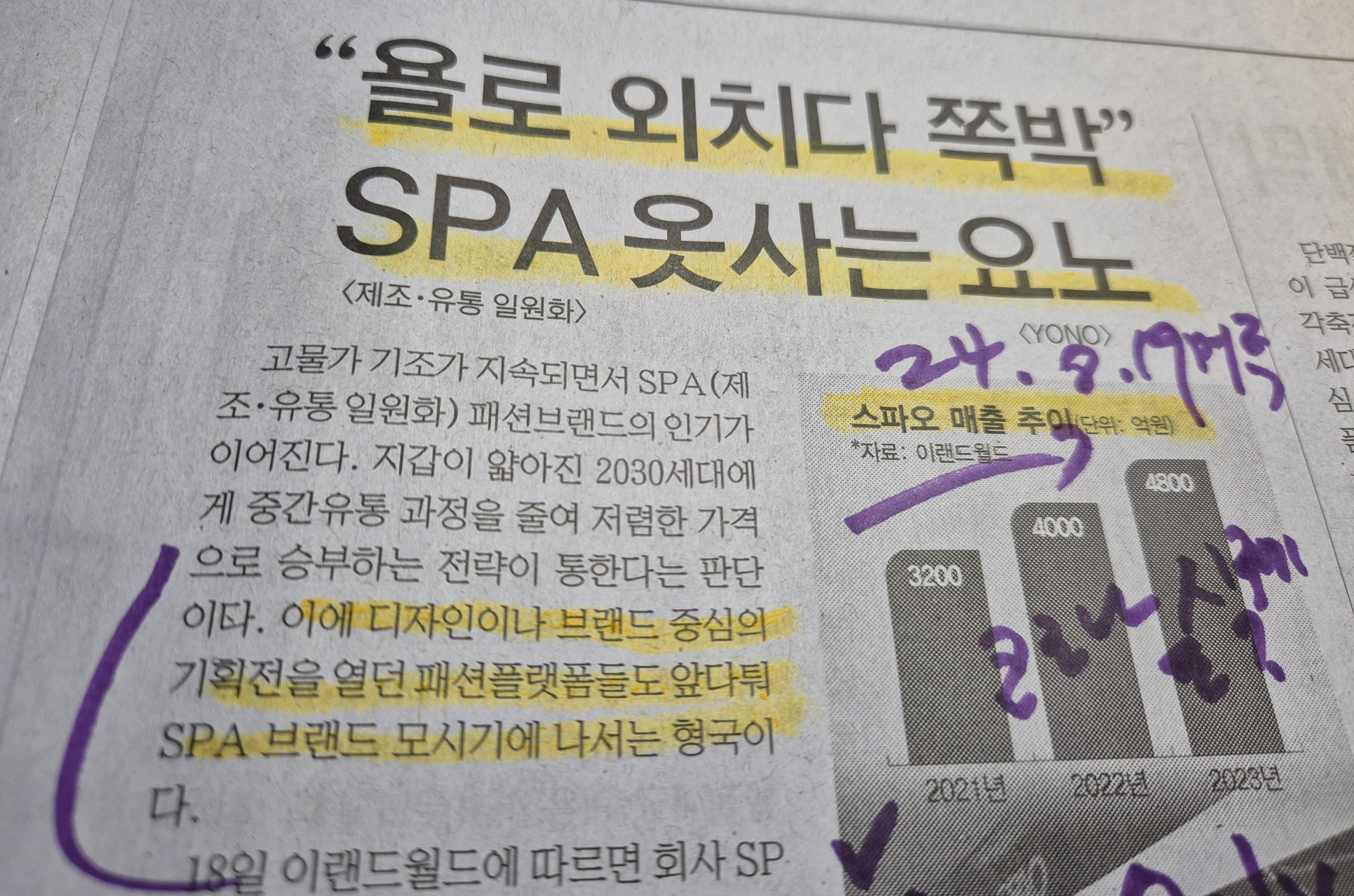 스파오 SPA 브랜드의 약진과 YONO 라는 필요한 것만 사는 세태 용어 24.8.19 머투