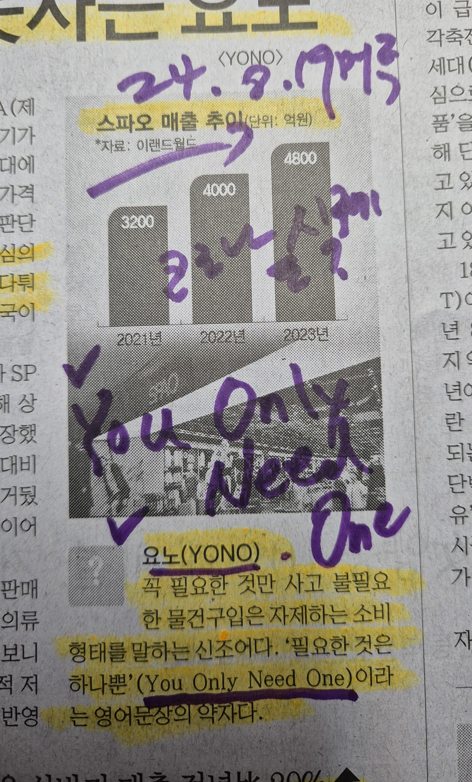 -YOLO 욜로라는 말이 10년 전 트렌드였다면 2024년 트렌드는 이제는 YONO 요노가 공감을 만들고 있다ㅏ.